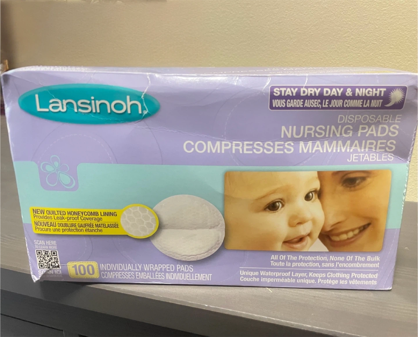 Full, brand new box of 100 individually wrapped Lansinoh disposable nursing pads.