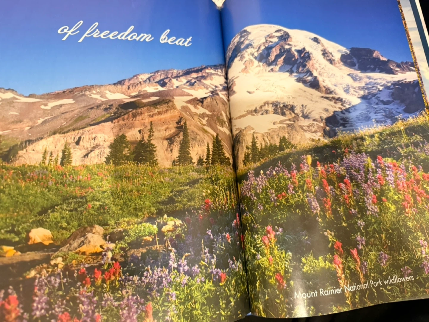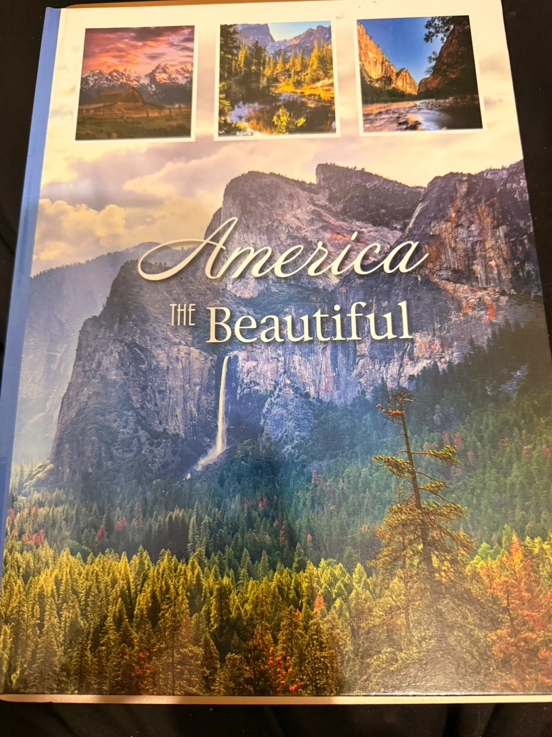 This photo book features stunning scenic images of American national parks and landscapes. It includes beautiful photography of Yosemite, Grand Canyon, and Mount Rainier. The book's pages showcase natural beauty with vibrant colors and detailed shots.