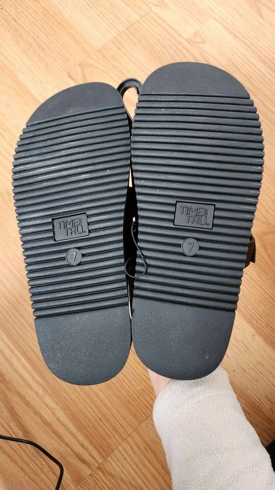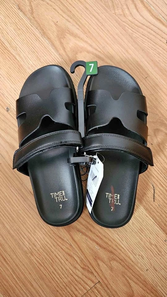 New with tag Time and Tru black slide sandals. Size 7. Super comfy. Great for summer or just lounging around. True to size.
