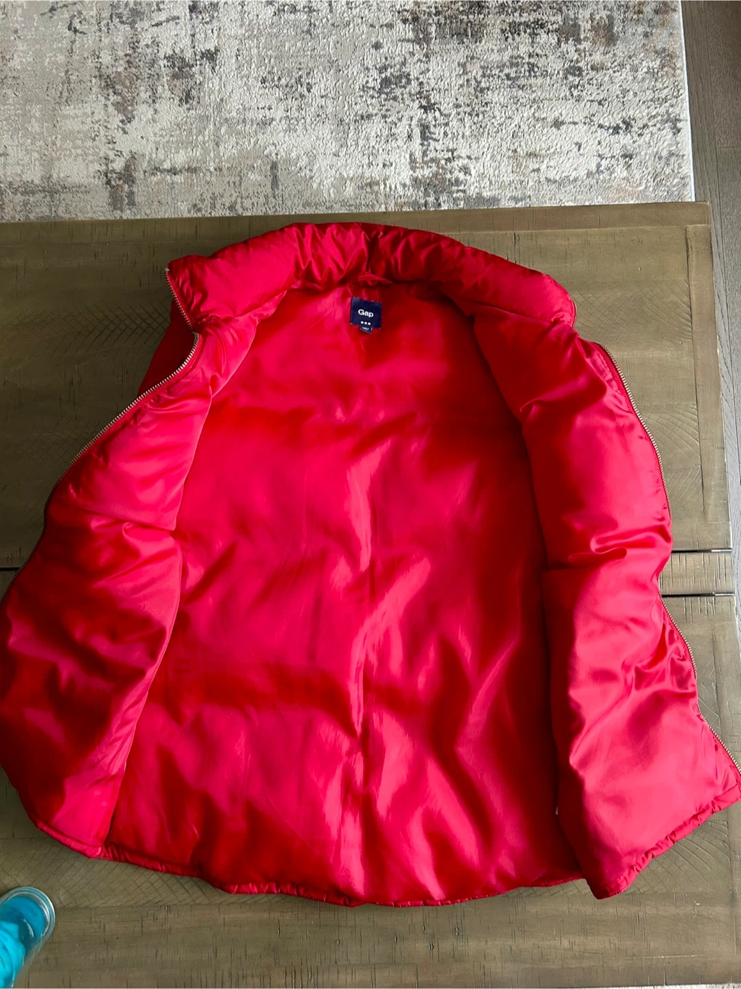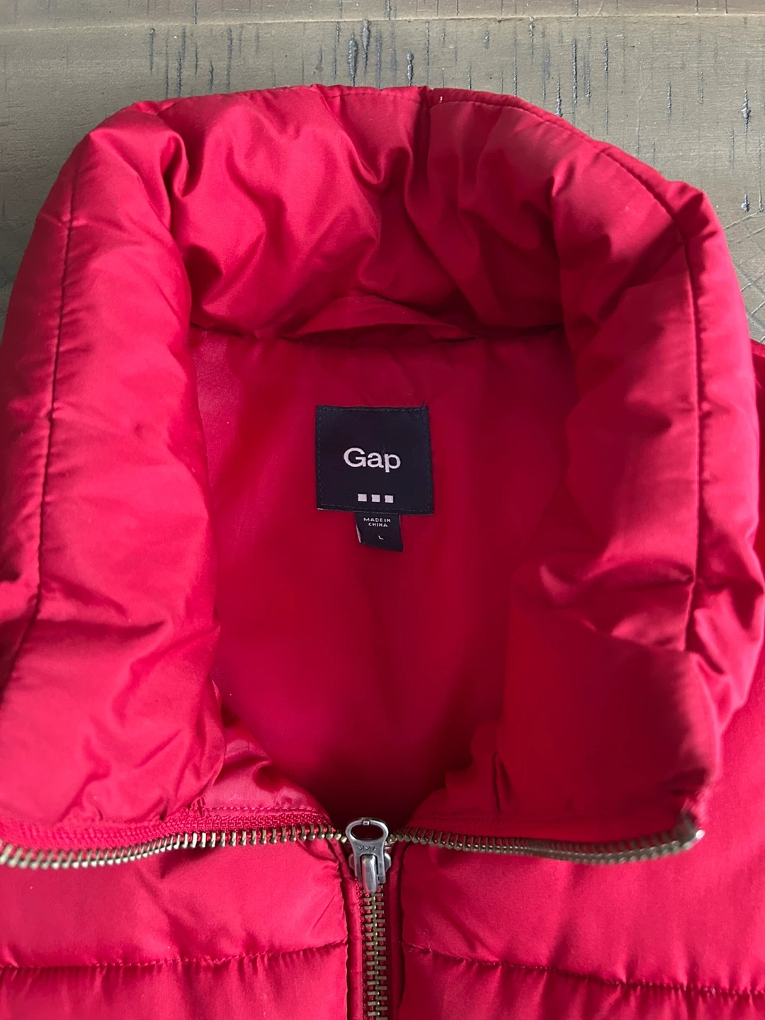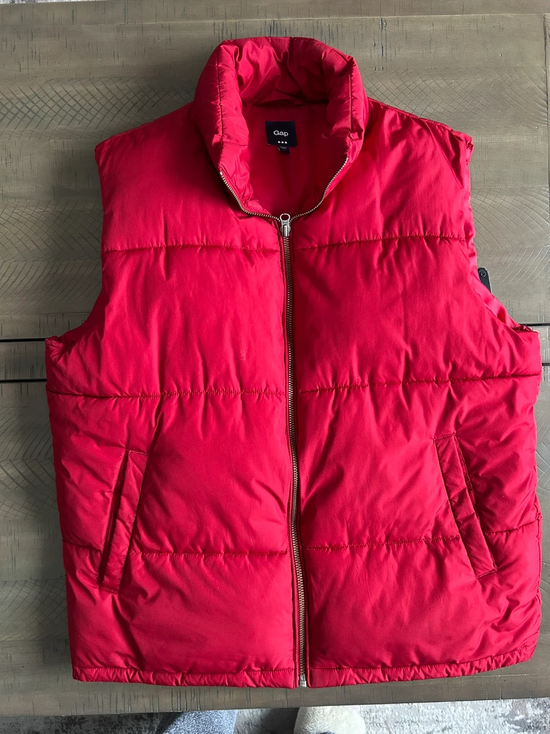 Rarely worn, in great shape. Red puffer vest by Gap. Features a zip-up front and two front pockets. Cozy and warm. Machine washable. Brampton, near Queen and Kennedy.
