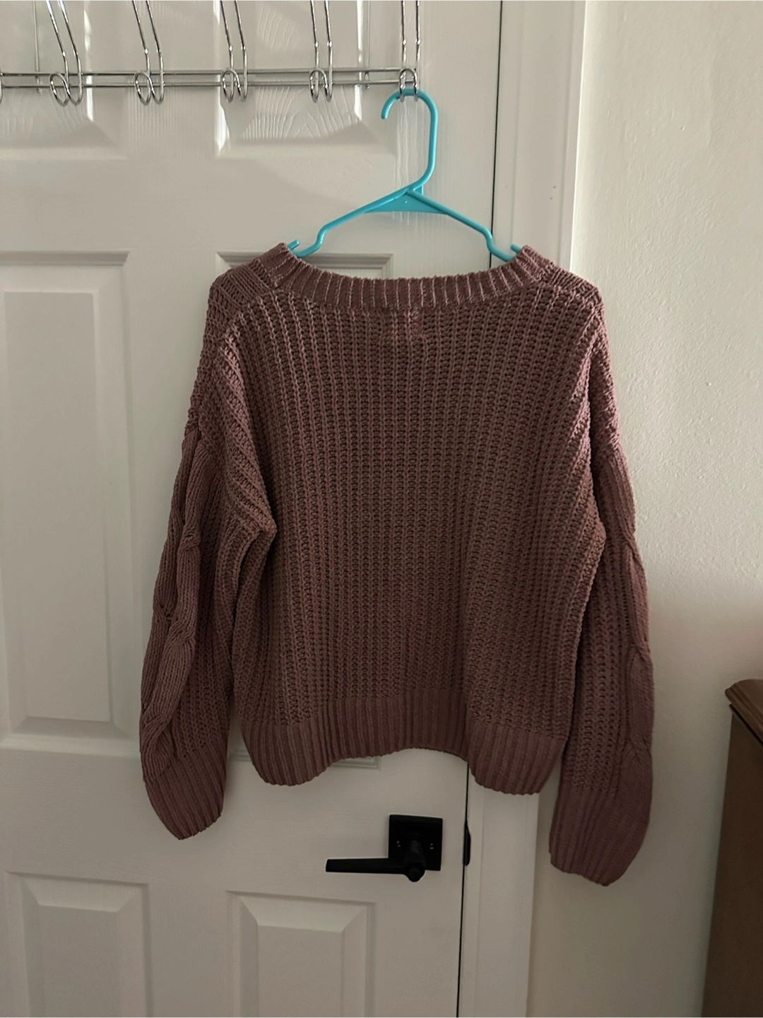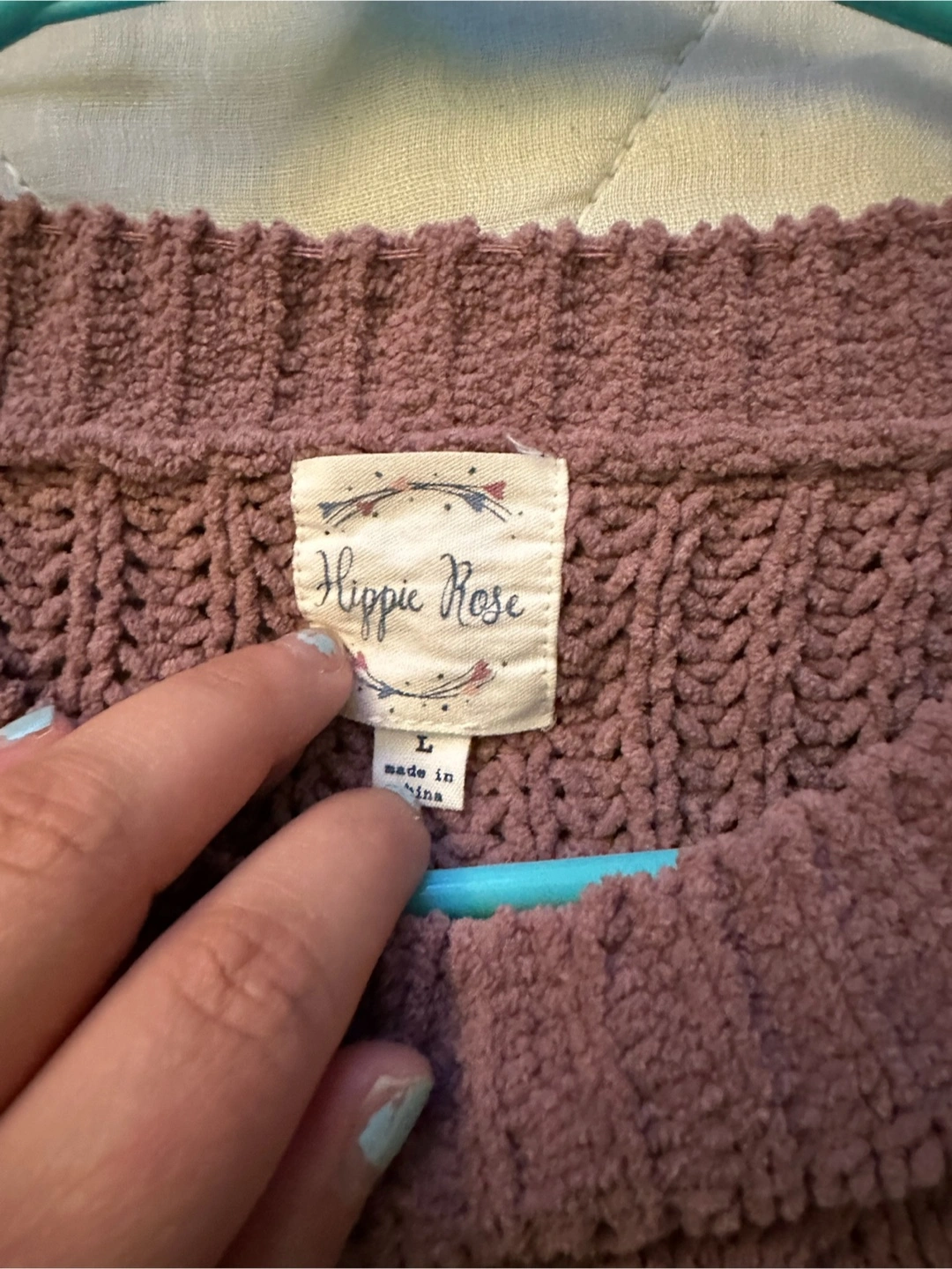 Selling a cozy Hippie Rose knit sweater in size large! It's a lovely mauve color and features a comfortable, relaxed fit. Perfect for layering or wearing on its own during cooler days