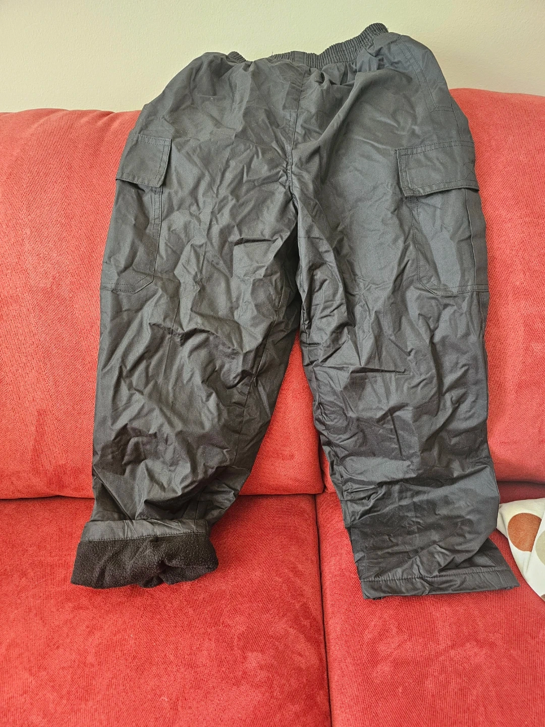 BRAND NEW Black snow pants with elastic waistband and pockets, water-resistant, size 7, 65% polyester and 35% cotton.