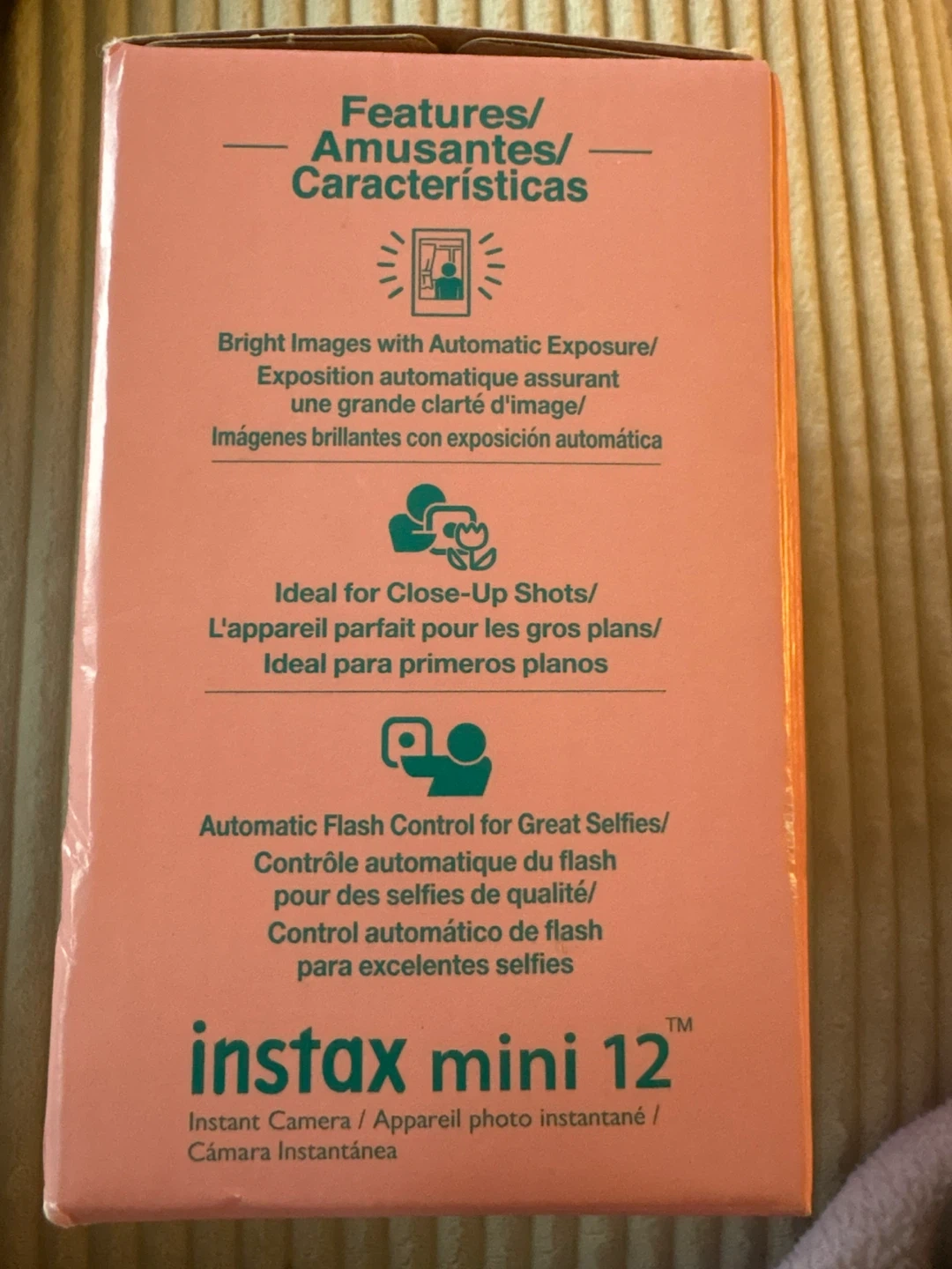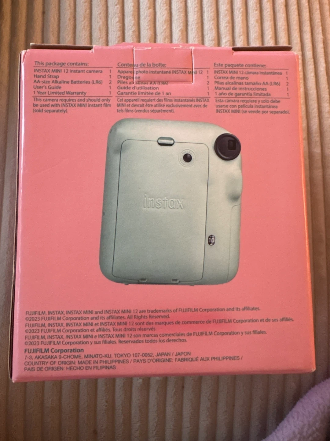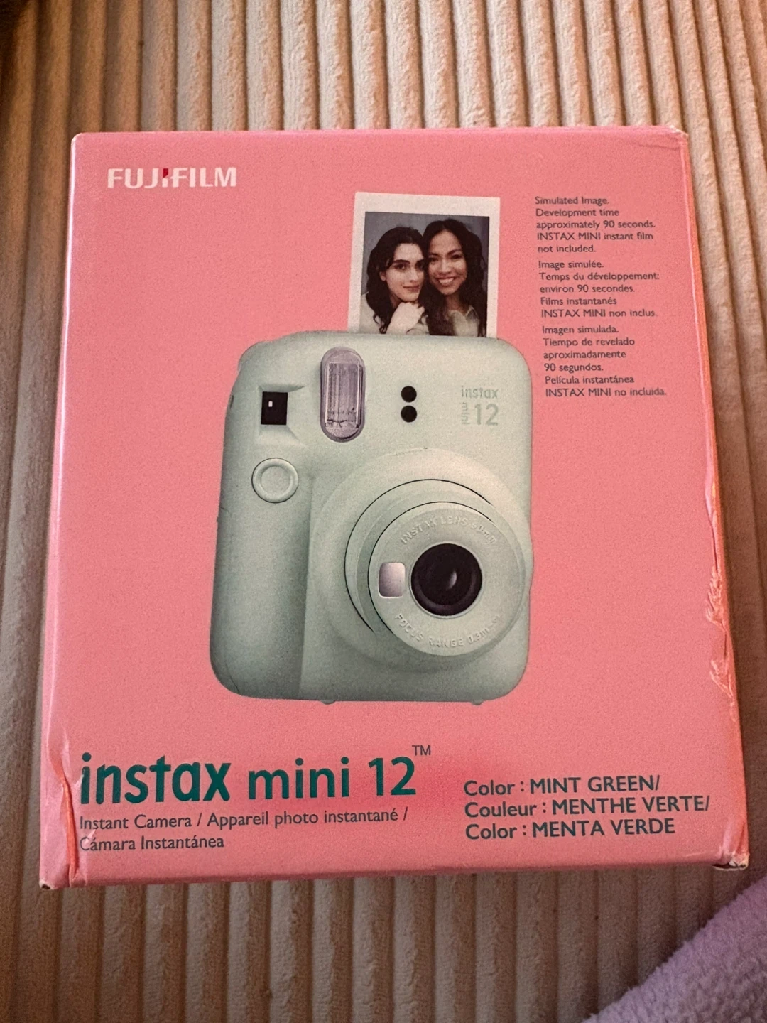 Selling a brand new Fujifilm Instax Mini 12 instant camera in mint green! It comes with the original box and all included components like the hand strap, alkaline batteries, and user's guide. The camera features automatic exposure and is ideal for close-up shots and great selfies. Originally bought for $104 CAD New in box never used - sells for $100+ tax online