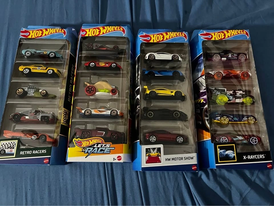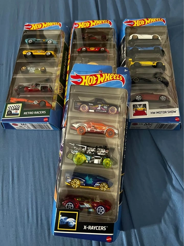 Hot Wheels 5 pack motor show, retro racers, let’s race , x-ray raycers