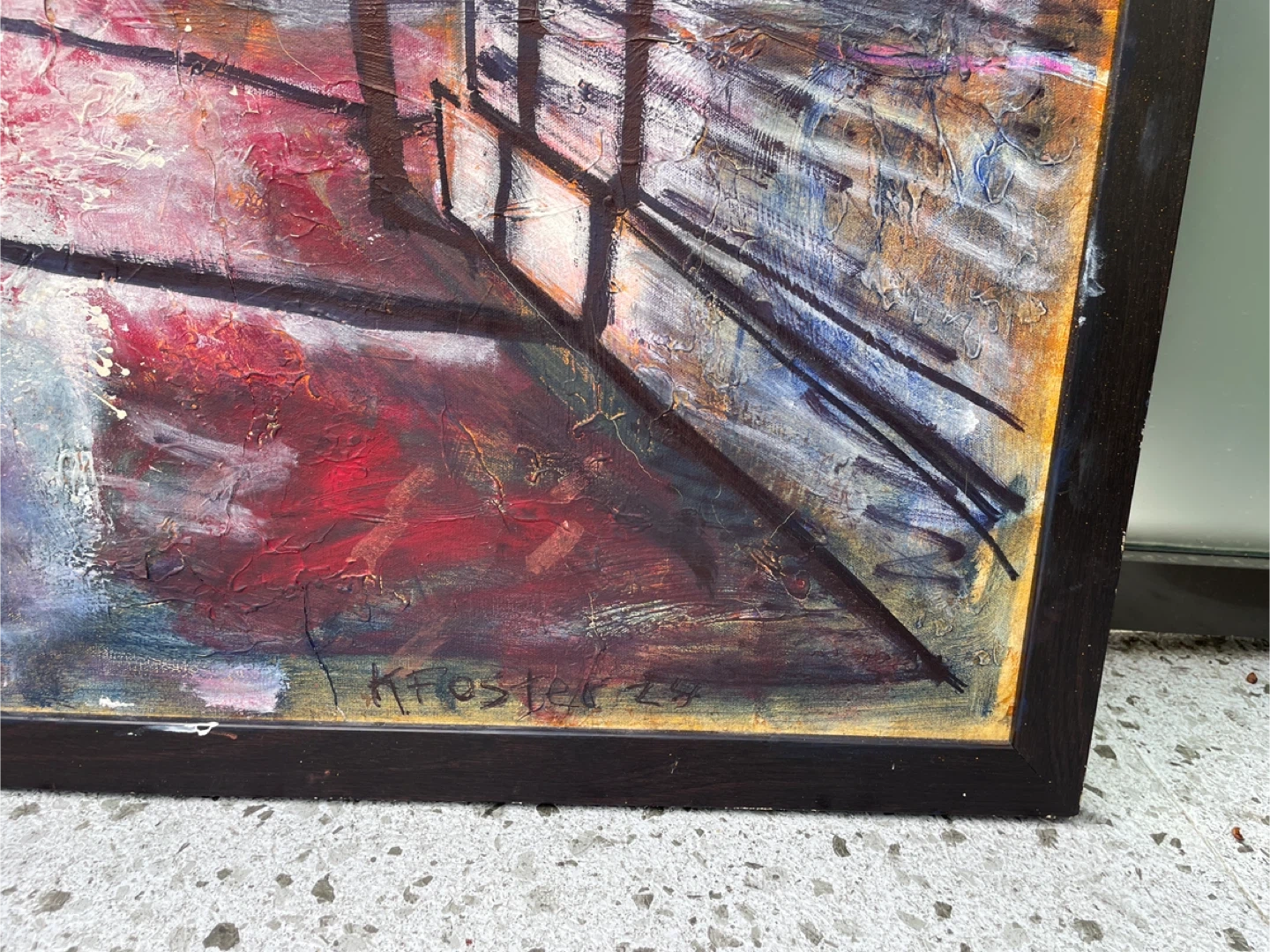 Ken Foster Urban Alley Cityscape Painting Moody Industrial Street Scene 40" x 40"