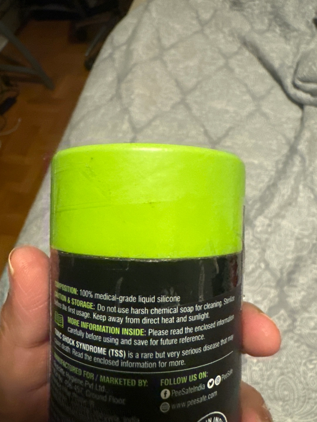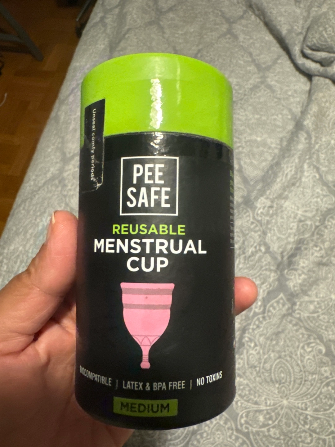 Reusable menstrual cup. Made of 100% medical grade silicone. Latex and BPA free. Comes in a reusable storage bag. Size medium.