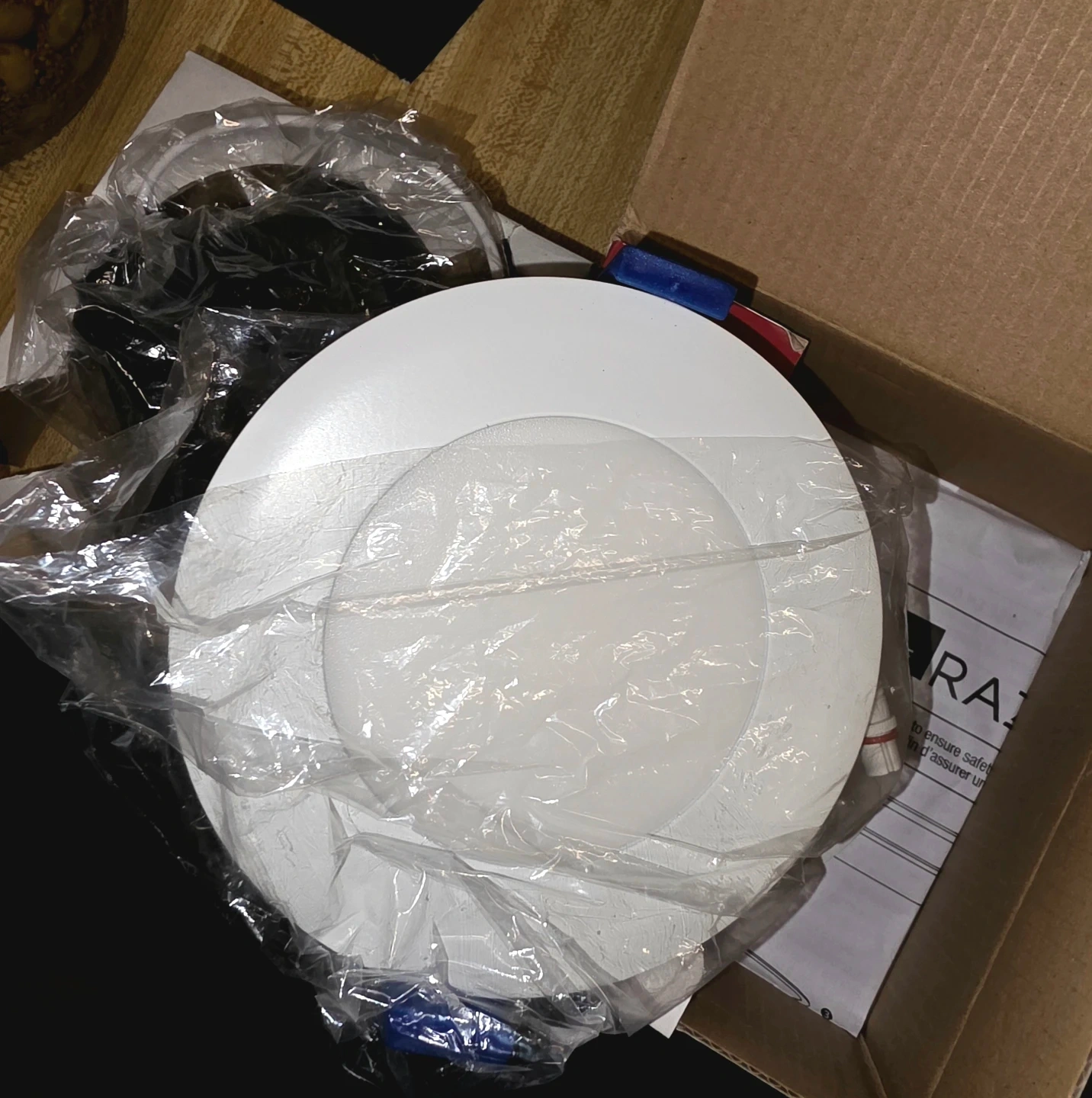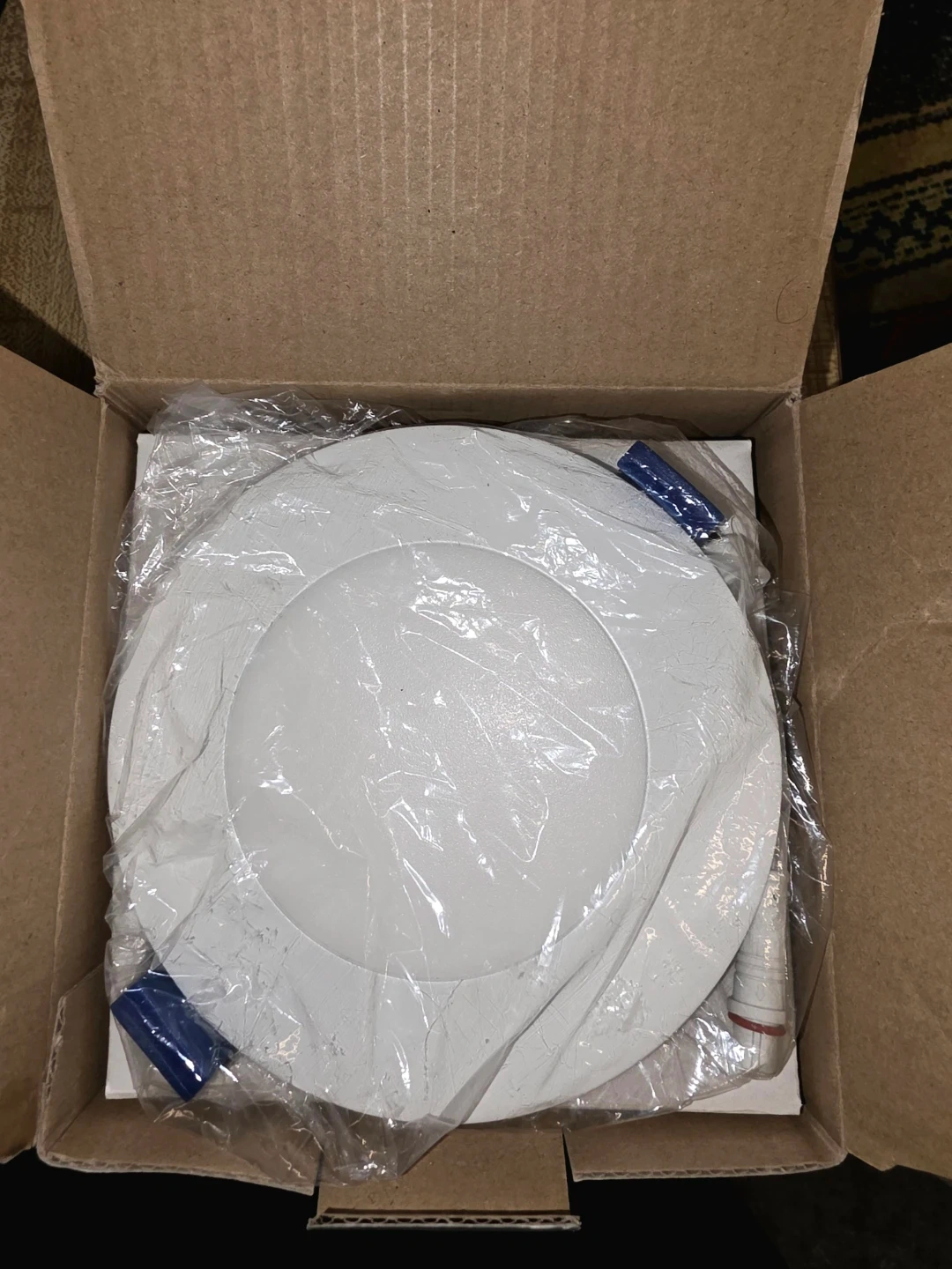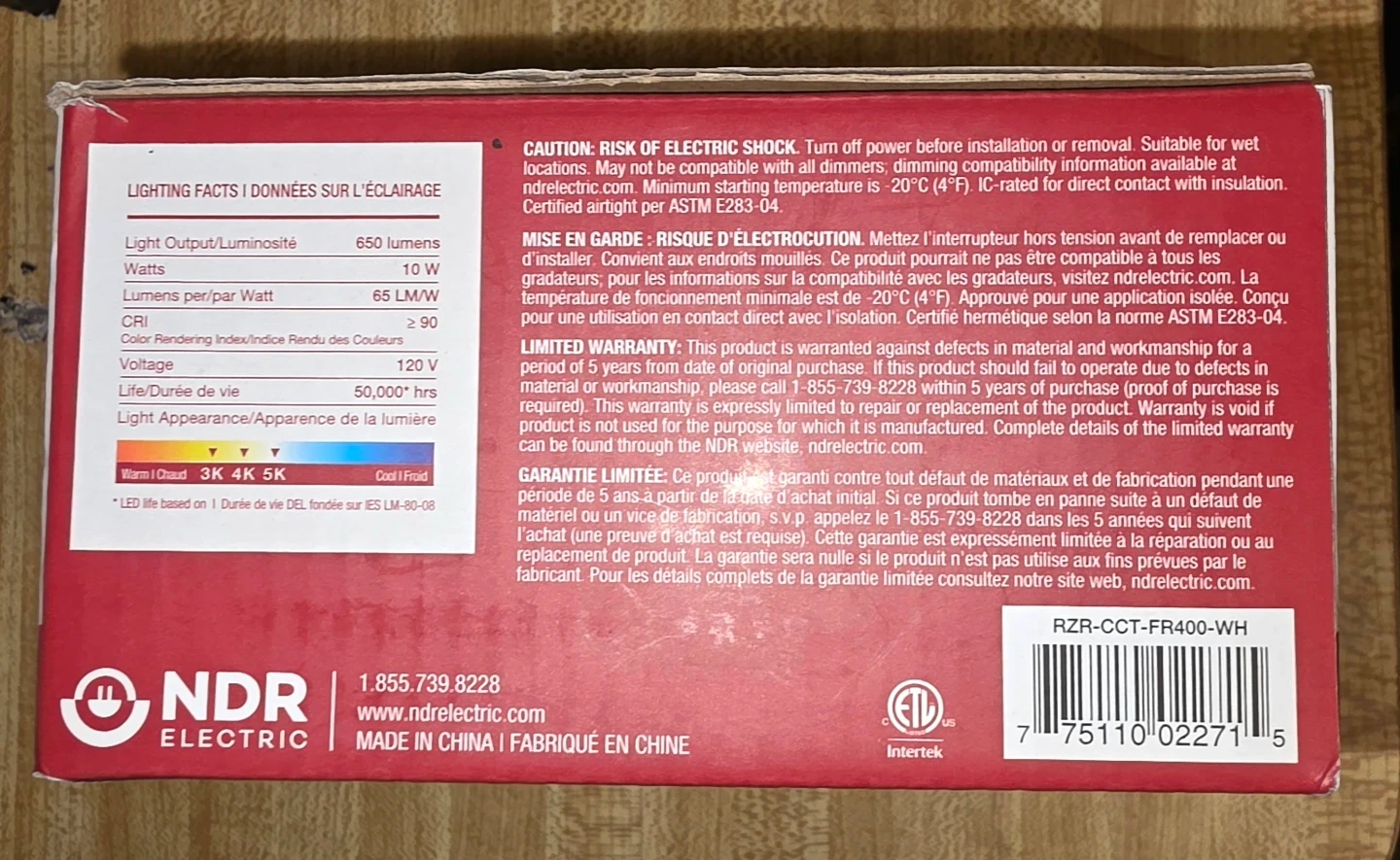 This is an NDR Electric Razor FR fire-rated recessed downlight. It's a 4-inch, white, dimmable LED light. It's suitable for wet locations and has a 2-hour fire rating. Includes original box and components.