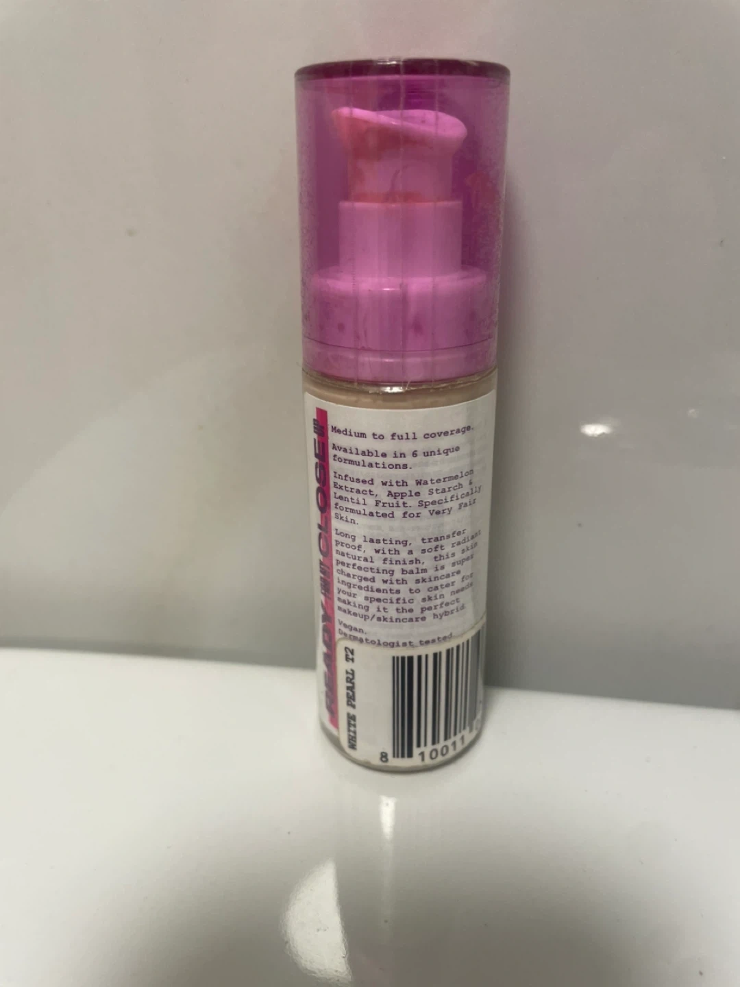 This foundation offers medium to full coverage. It's infused with watermelon extract, apple starch, and lentil fruit, specifically formulated for vegan and dermatologist-tested skin. This long-lasting, transfer-proof formulation ensures a natural finish.