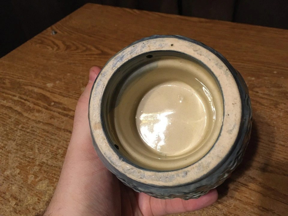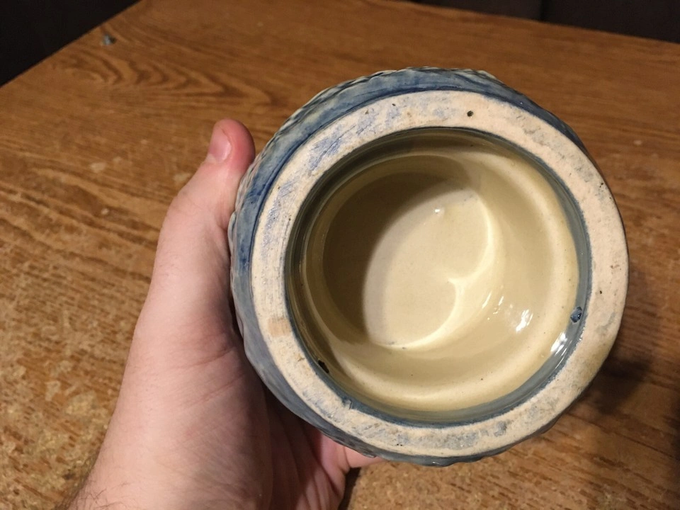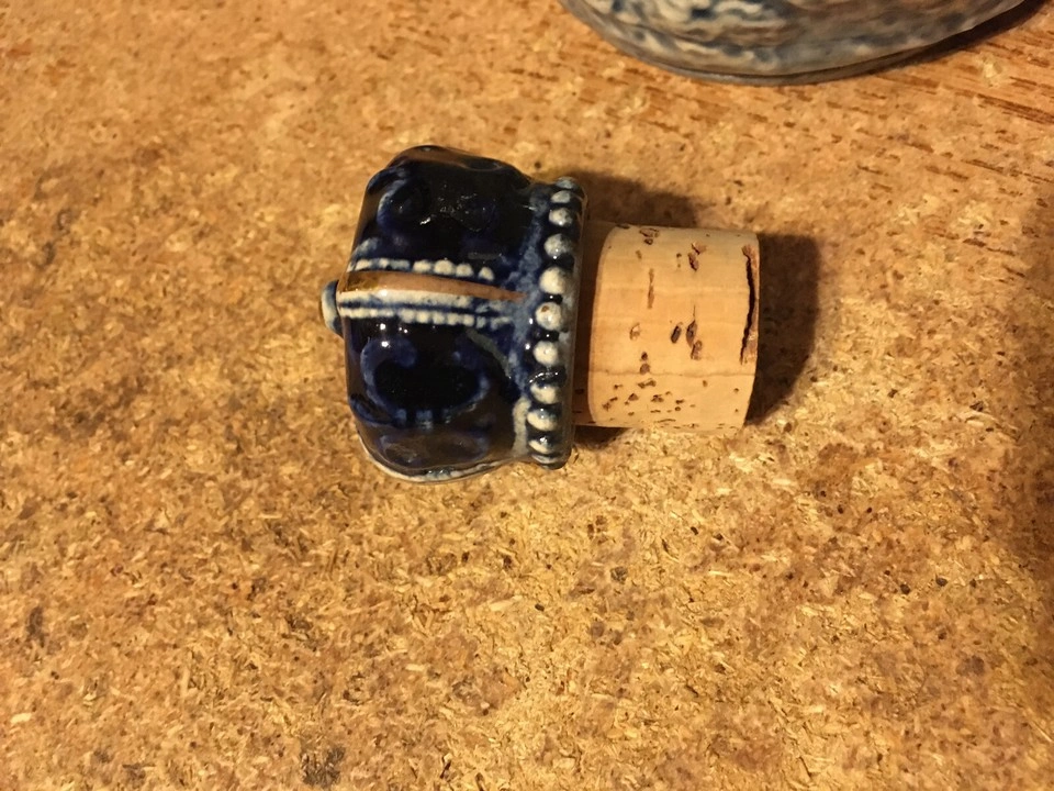 Vintage Blue & White Ceramic Cobalt Liquor Bottle Crown Cork