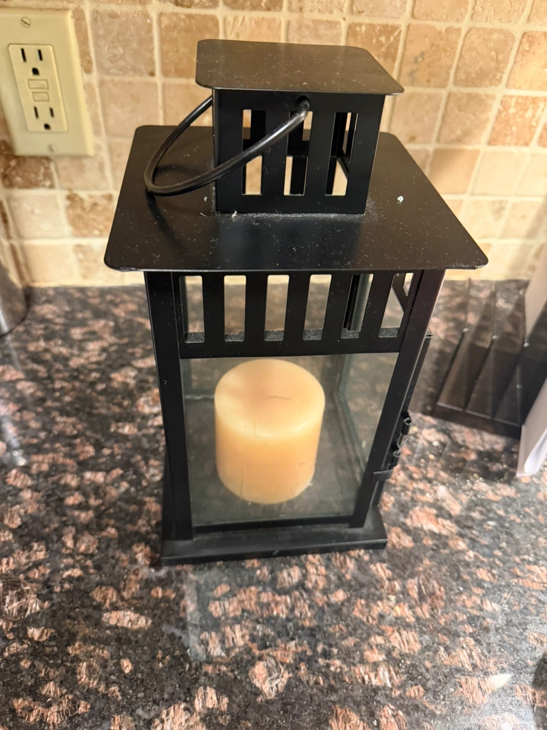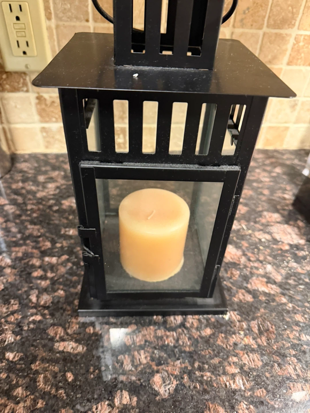 Black Metal Lantern with Pillar Candle