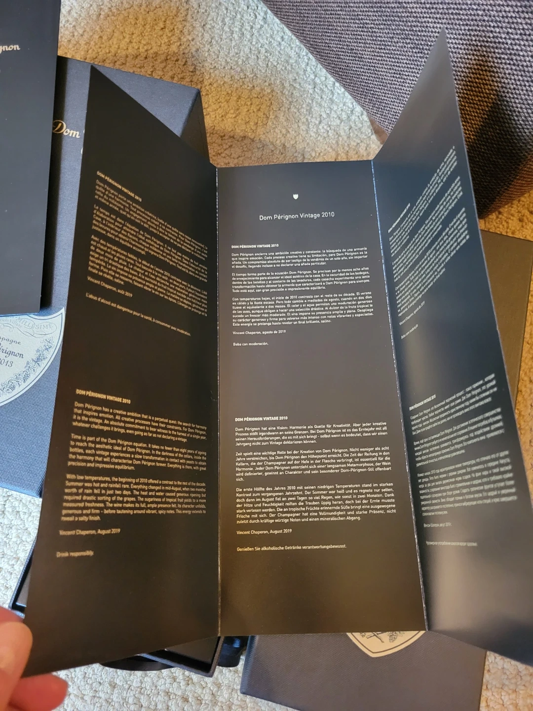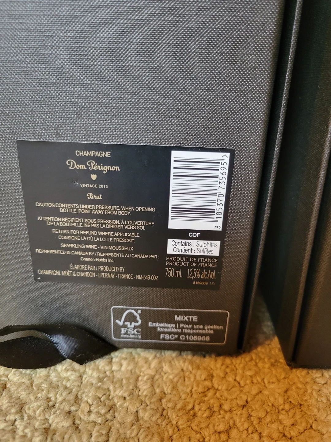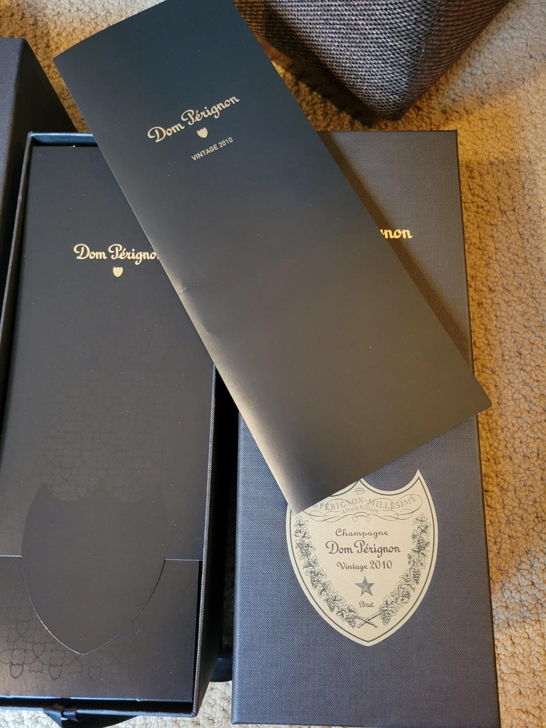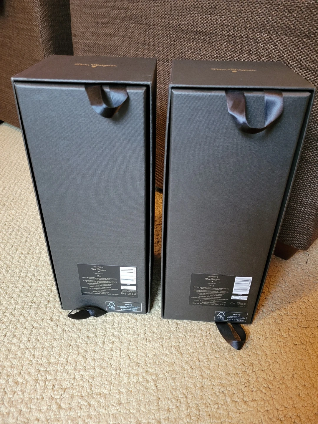 Empty gift boxes for the Dom Pérignon Vintage 2010 & 2013 champagne.