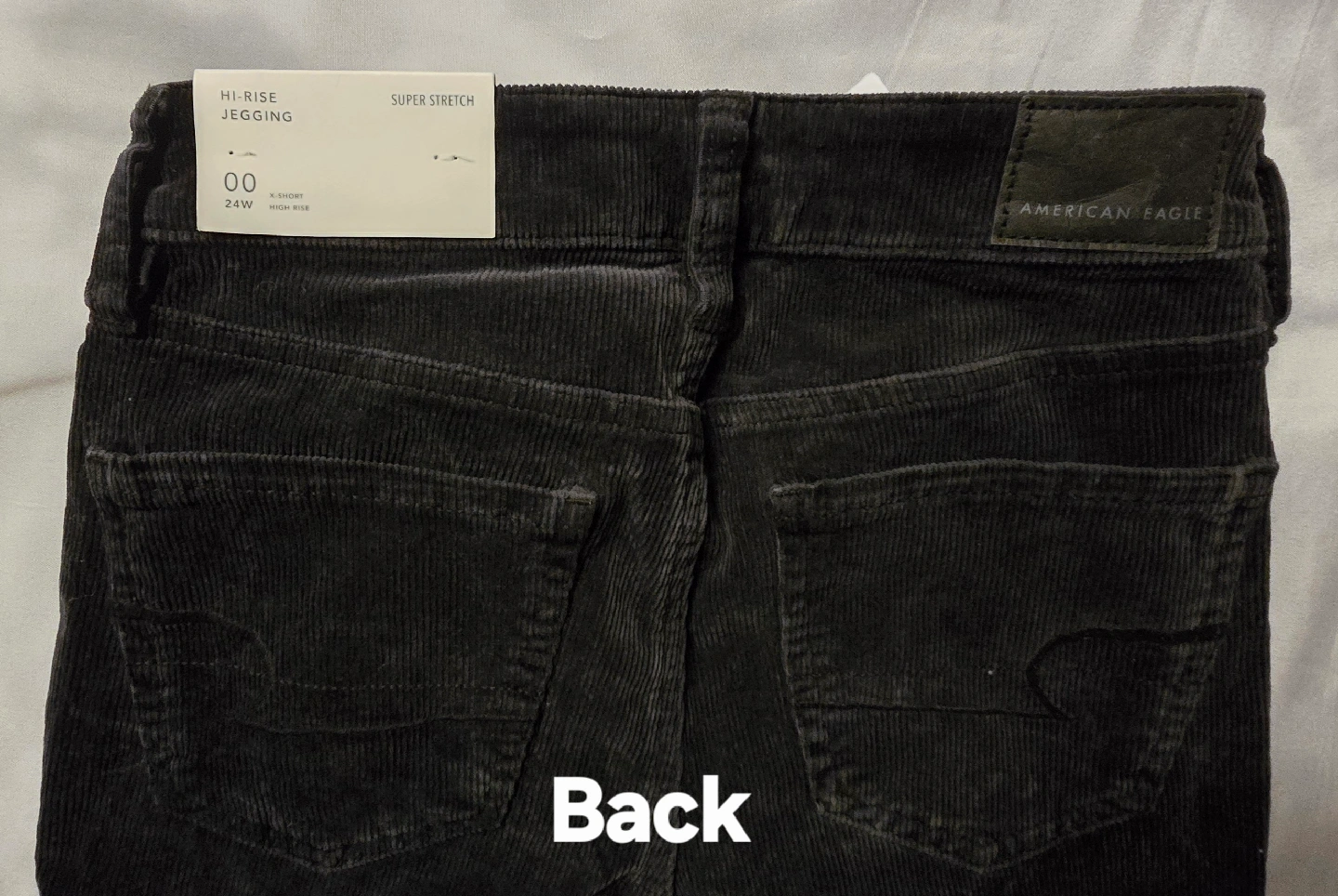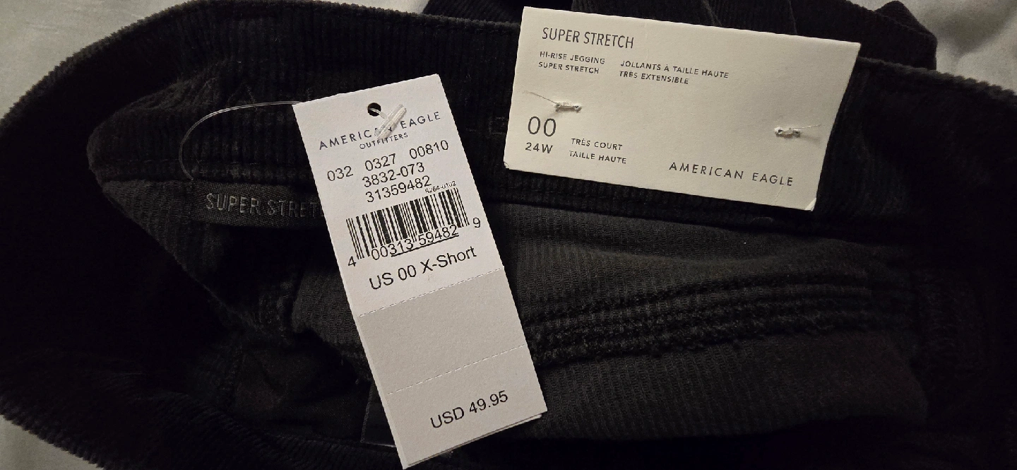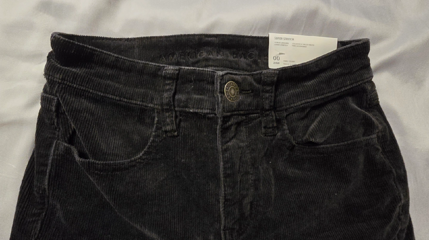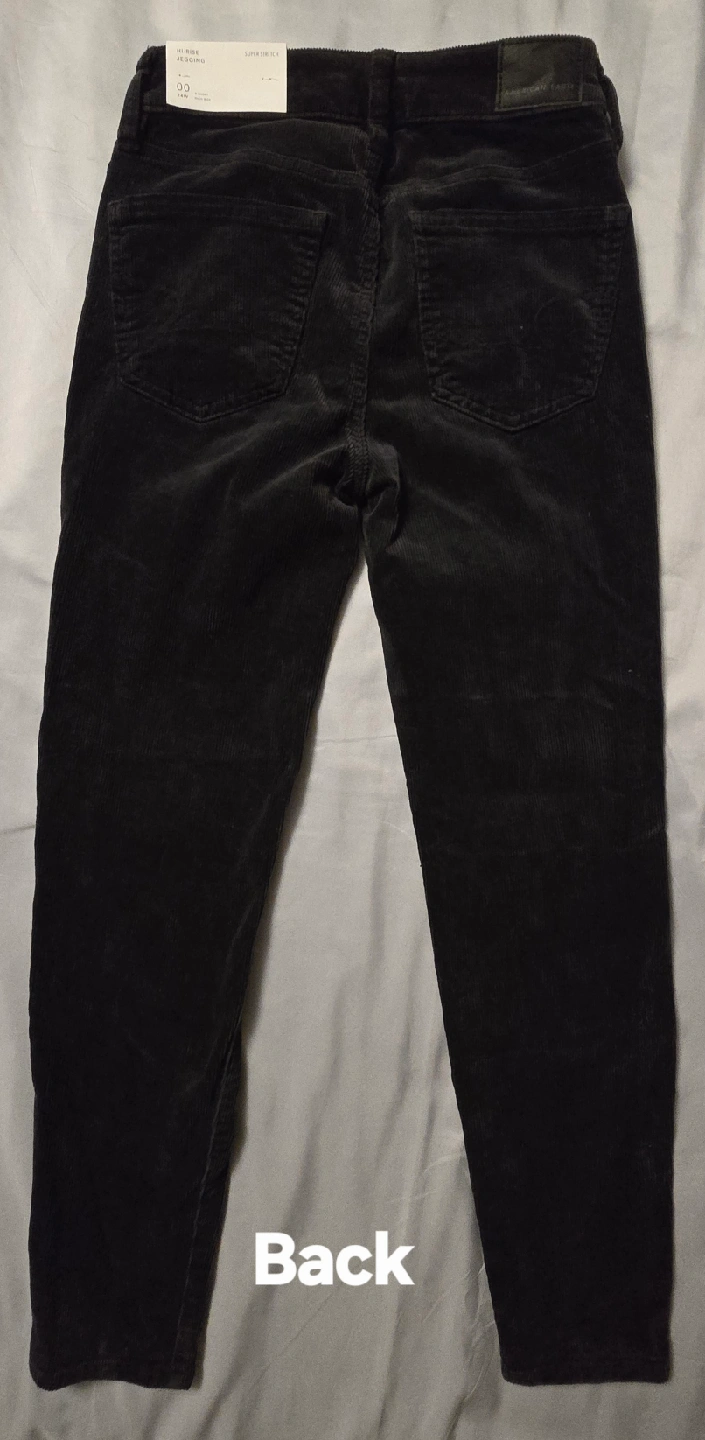 BRAND NEW WITH TAGS! Womens American Eagle Hi-Rise Super Stretch black corduroy jeggings in size 00 x-short! They're a super stretch corduroy material and in great condition! Perfect for a comfy and stylish look.