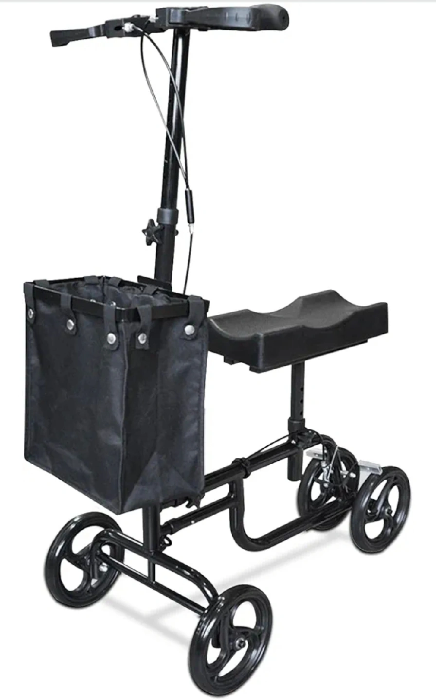 【Easy to Use】The black knee scooter is simple to use, easy to operate, and the height of the pole can be adjusted to meet your different needs. The upgraded knee scooter has added a cloth basket design, which can be used to store personal belongings.