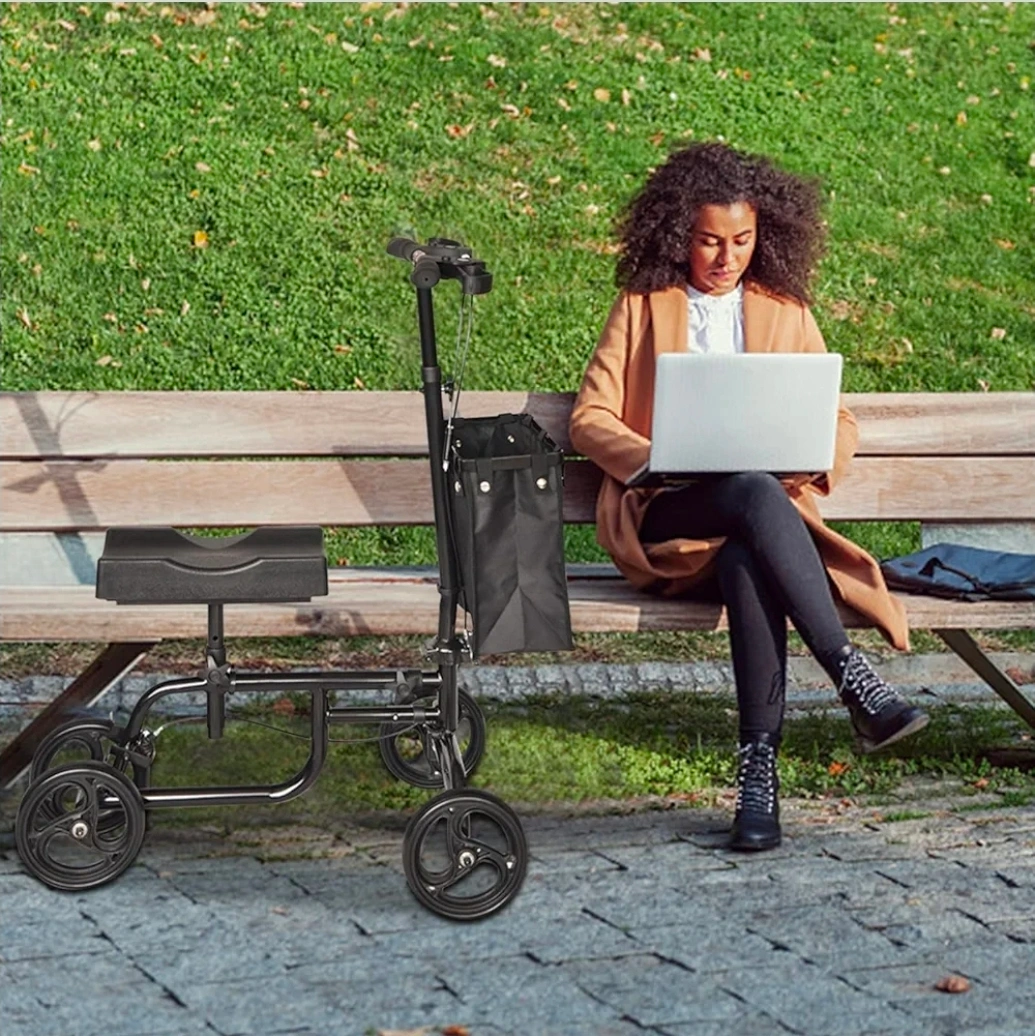 【Excellent Crutch Alternative】This affordable knee walker is more comfortable and stable than traditional crutches, with four wheels for easy steering and balance.
