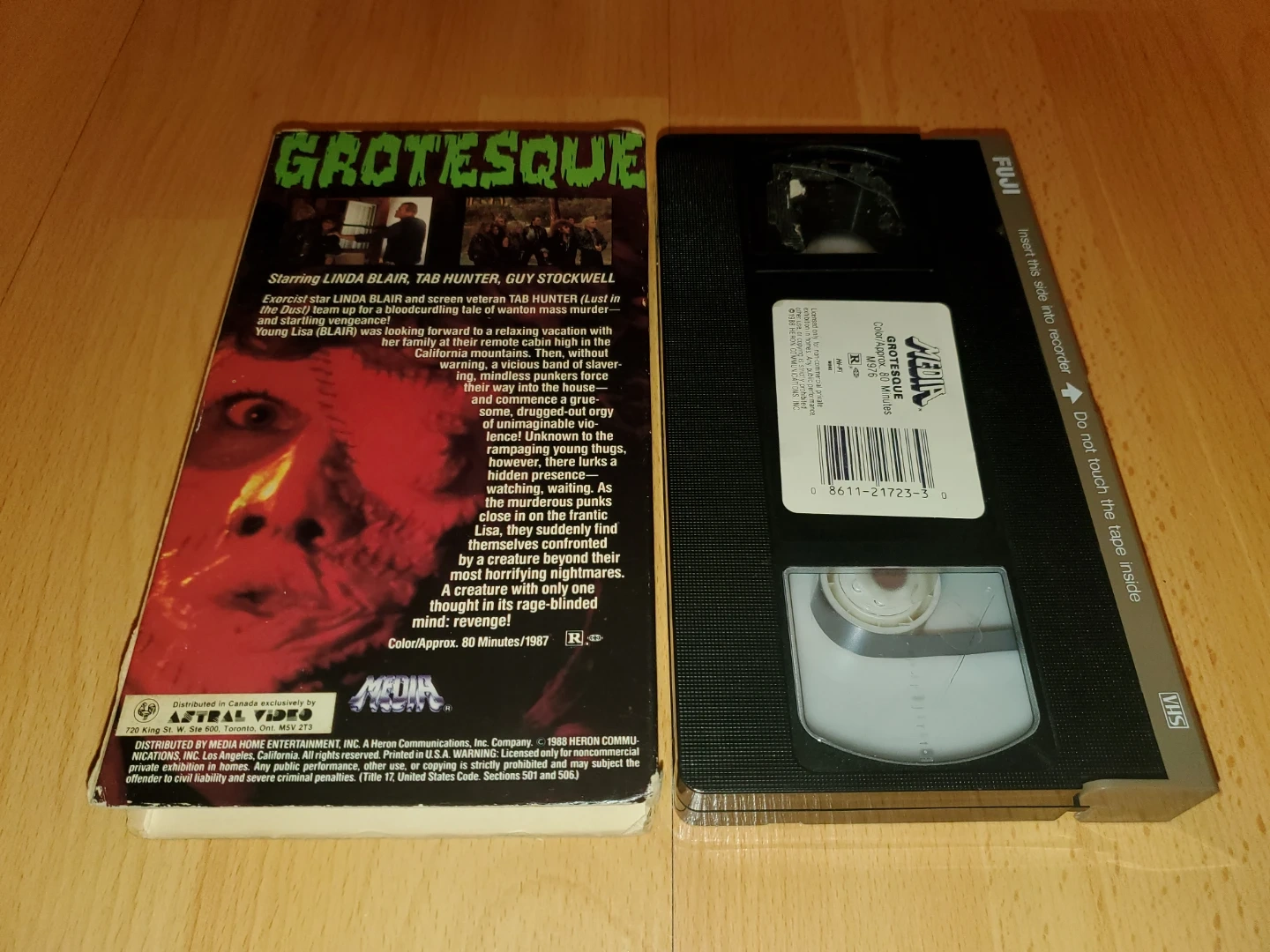 This is a VHS copy of the 1988 horror film Grotesque. It's approximately 80 minutes long. The original release date was 1988.