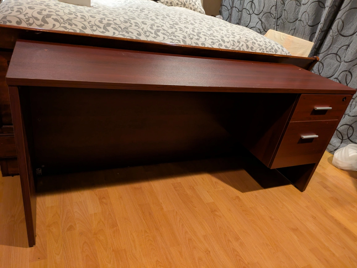 Dark Cherry Wood finish heavy duty desk with 2 drawers