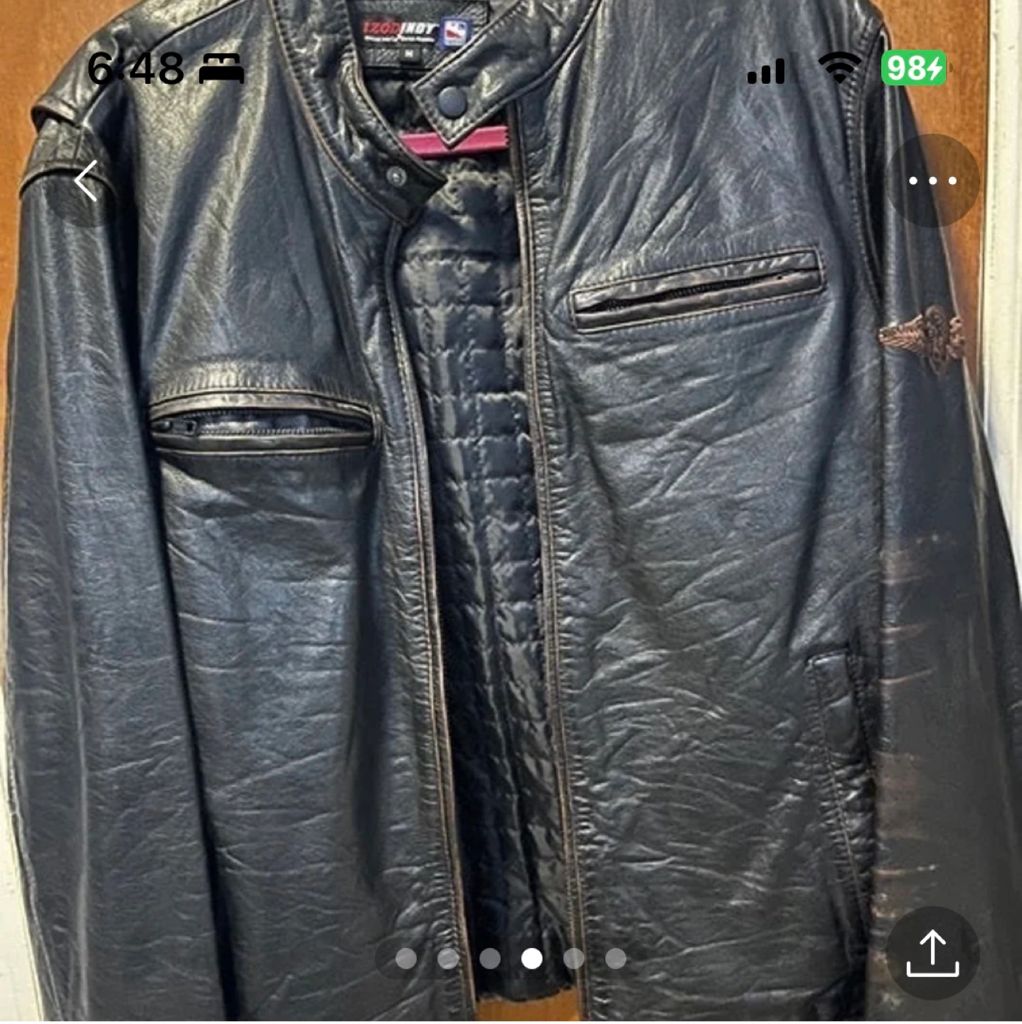 This is a worn looking leather jacket. A nice weight to the jacket.