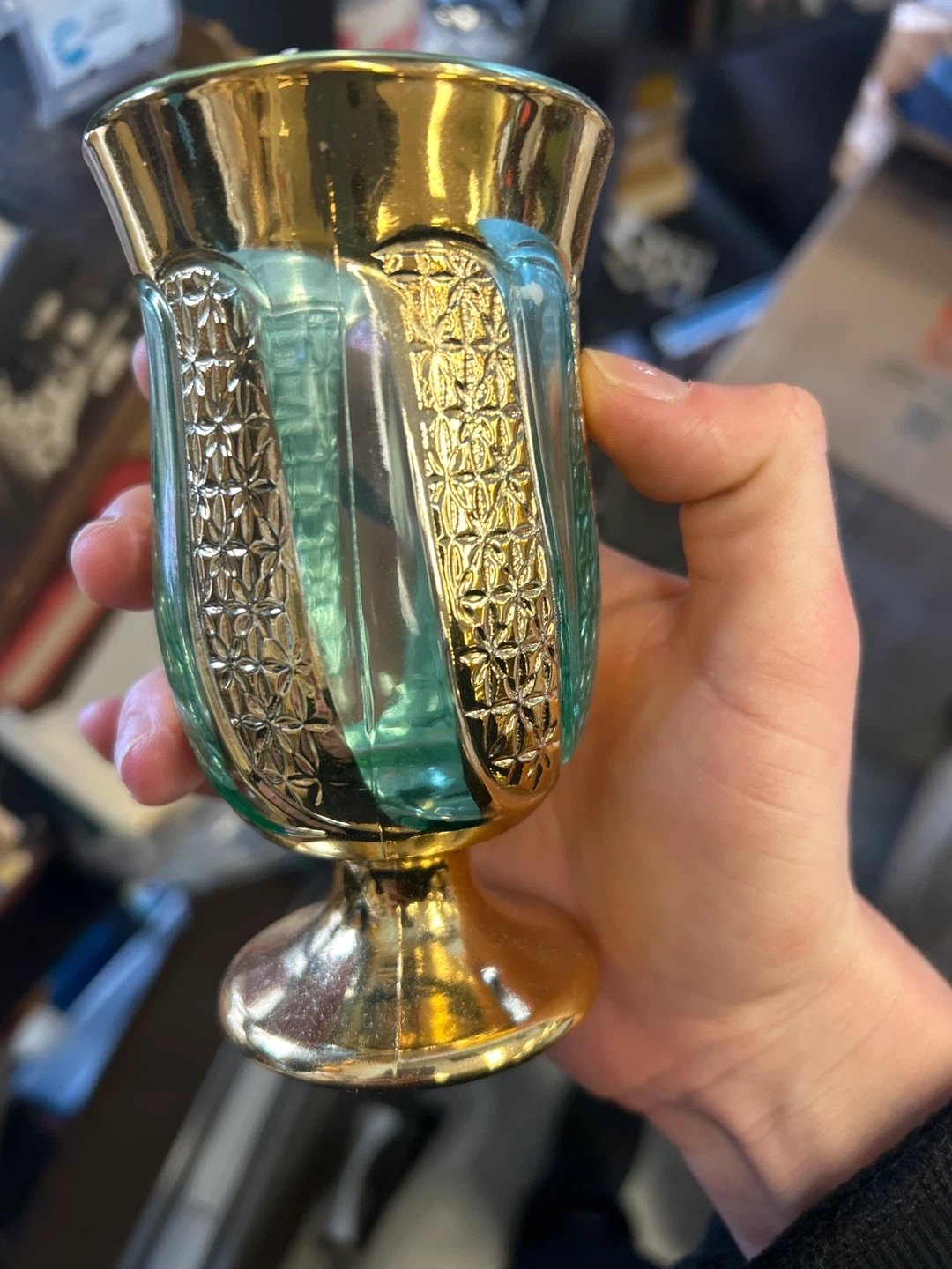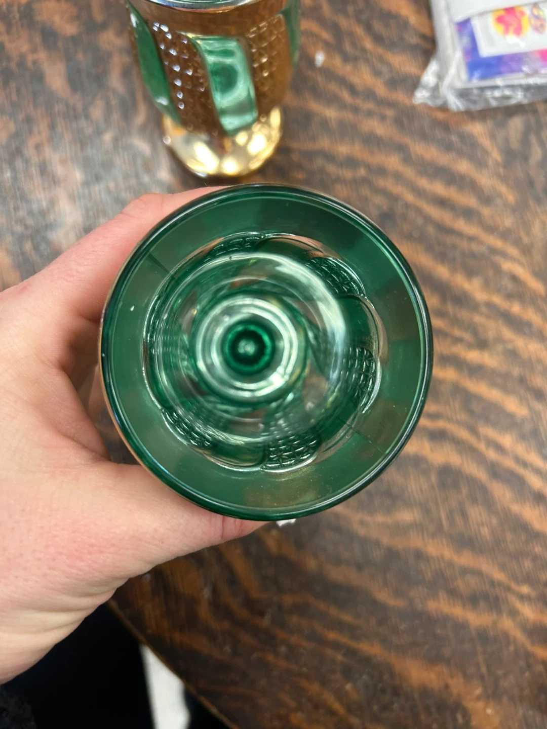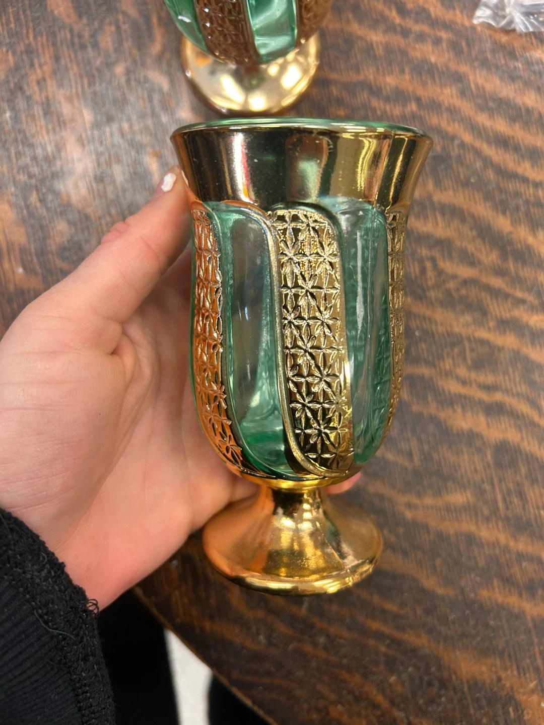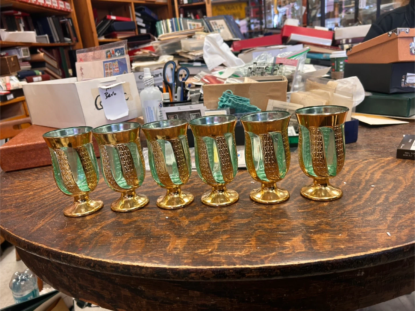 Set of 6 Vintage Bohemian Green & Gold Cordial Glasses – Mid-Century