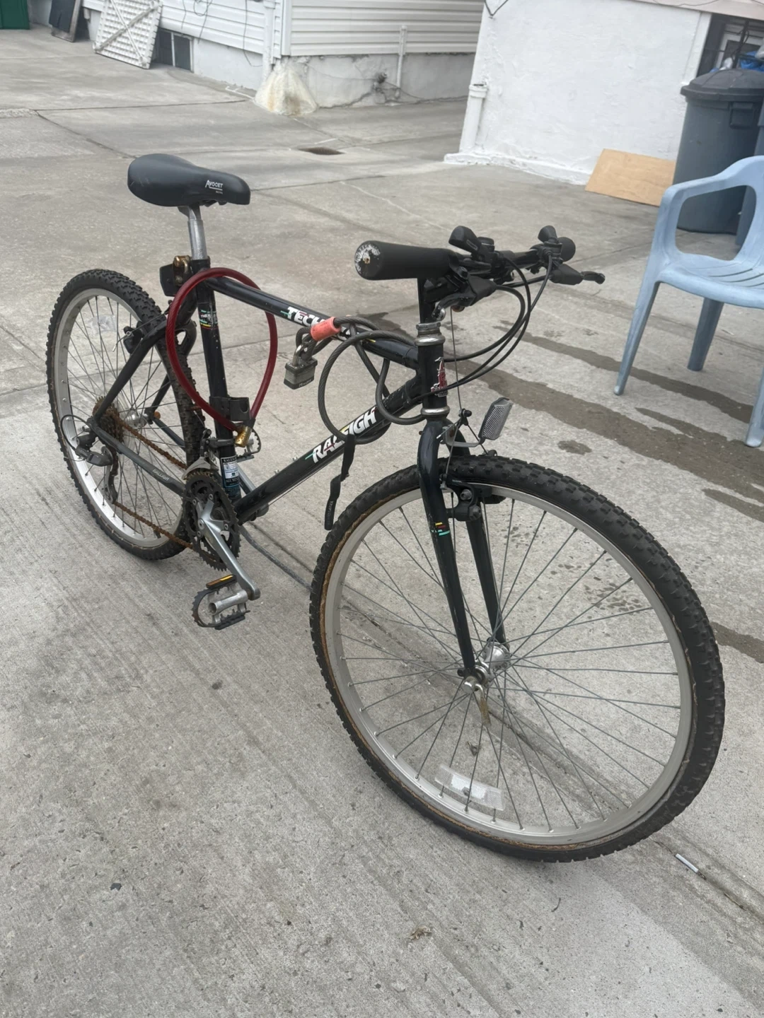 Esta es una bicicleta de montaña Raleigh Technium clásica de los años 90 con ruedas de 26 pulgadas.