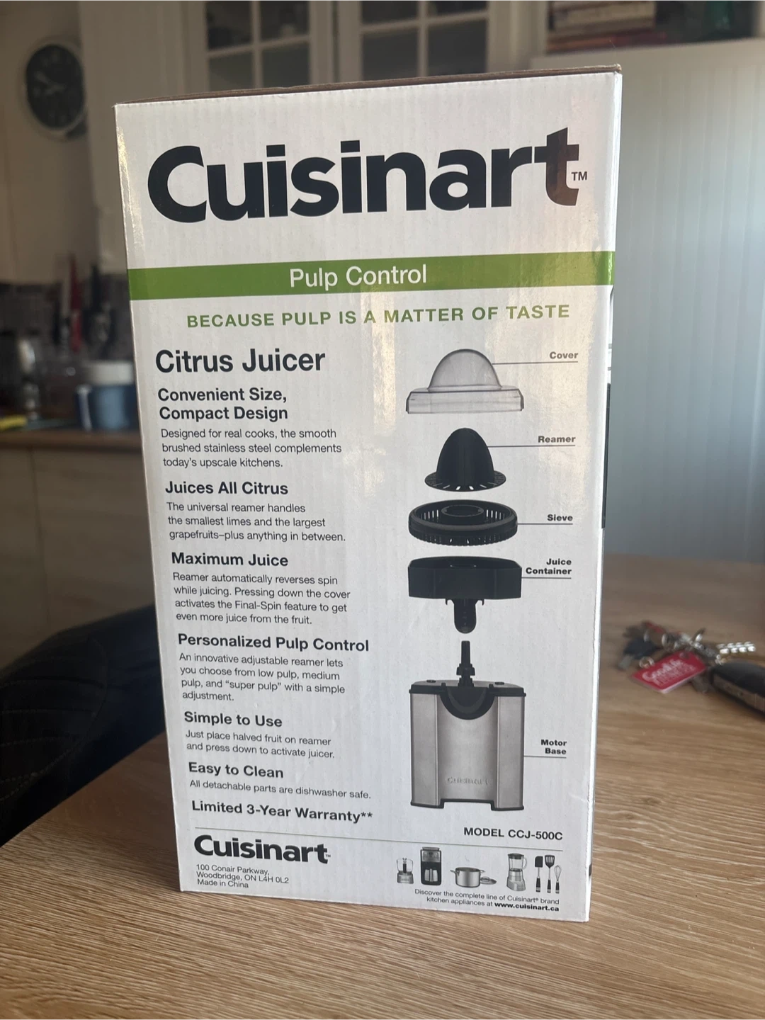 This Cuisinart citrus juicer has a Pulp Control feature for personalized pulp settings. It's a convenient size and compact design, perfect for any kitchen. All detachable parts are dishwasher safe. Juices all citrus fruits easily!