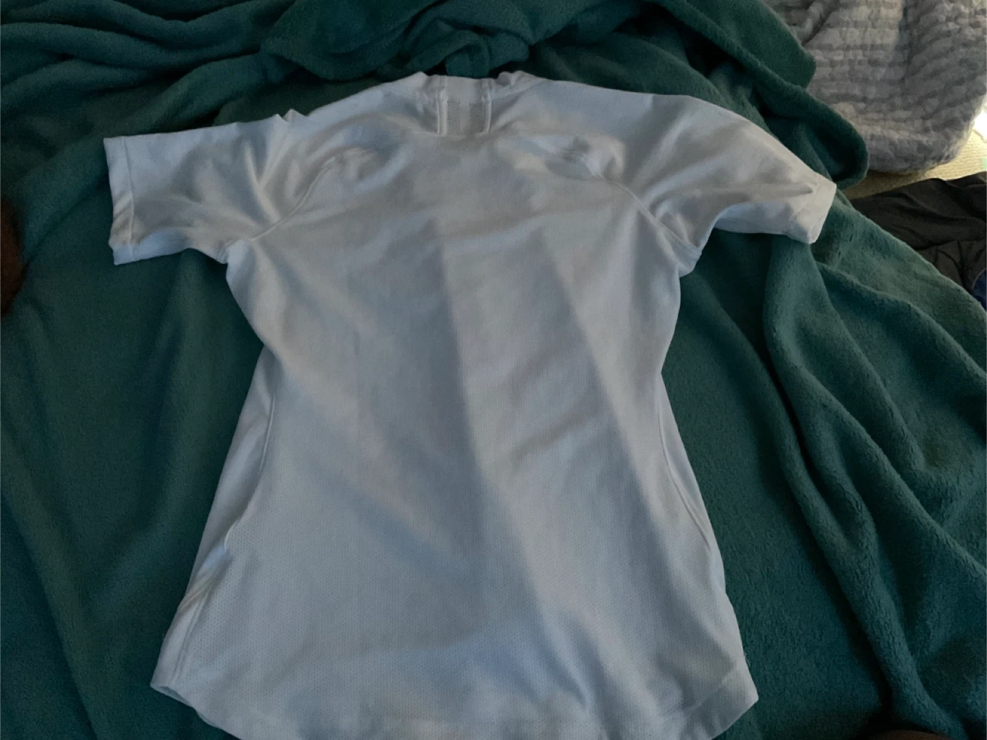 White Nike short-sleeve soccer jersey. Features the Canada soccer crest on the chest. It's made with moisture-wicking fabric. Great for any Canadian soccer fan!