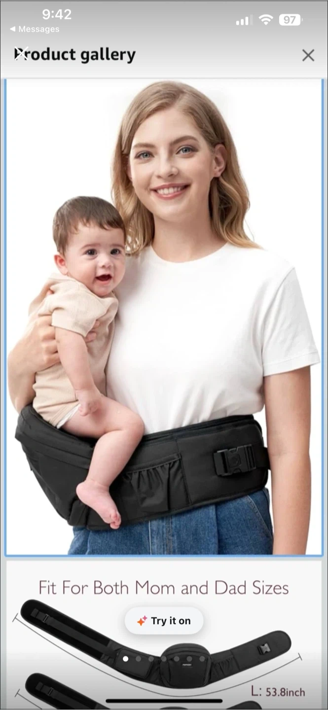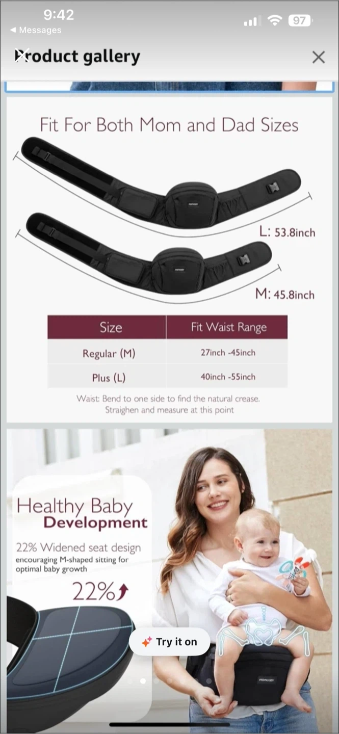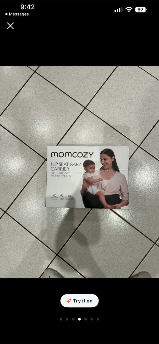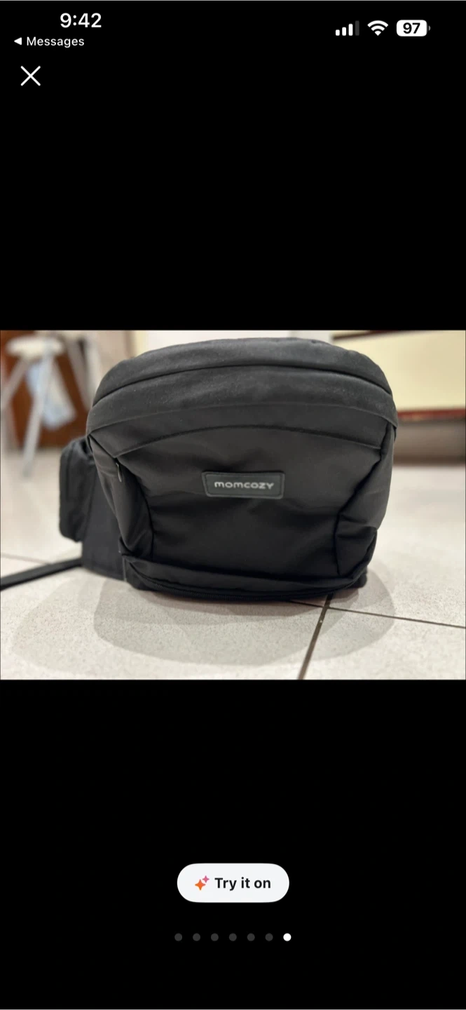 I'm selling a Momcozy baby hip seat carrier in black! It's designed to fit both mom and dad sizes.