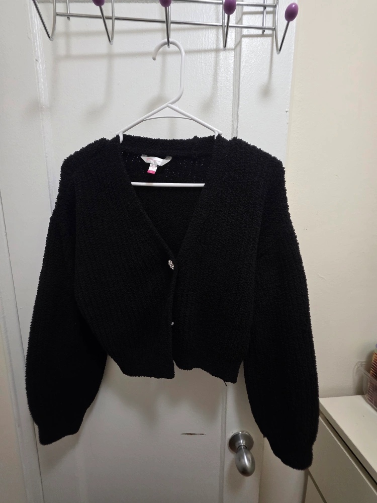 Selling a cozy black cardigan from No Boundaries! It's a size XXL. The material is soft and perfect for layering. It's in great condition and ready for a new home