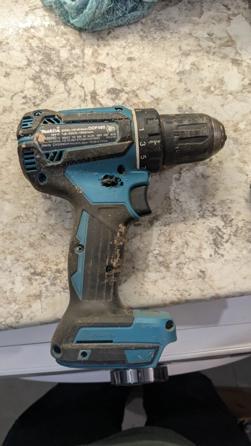 Giving away a Makita DDF485 cordless drill for spare parts along with three 18V batteries. (Drill was modified for an unknown reason.)