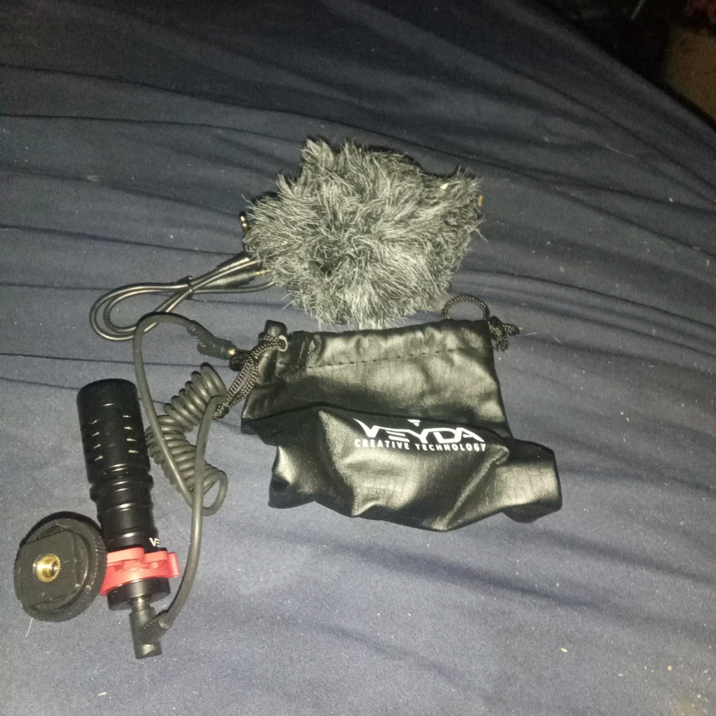This kit includes a smartphone video rig, a microphone with a pop filter and stand, and a small LED light. It's designed to help you create better video content with your phone. The microphone comes with a windscreen and a desk stand.