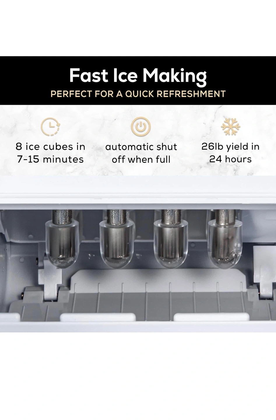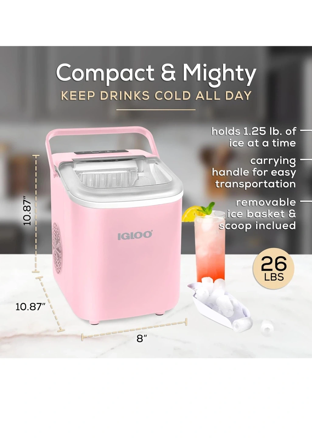 Get ready to chill with this Igloo portable electric ice maker! It's in a cute pink color and makes ice quickly with one-touch operation. It can make 8 ice cubes in just 7-15 minutes and yields 26lb in 24 hours. Enjoy bullet ice cubes that melt slower, keeping your drinks colder for longer