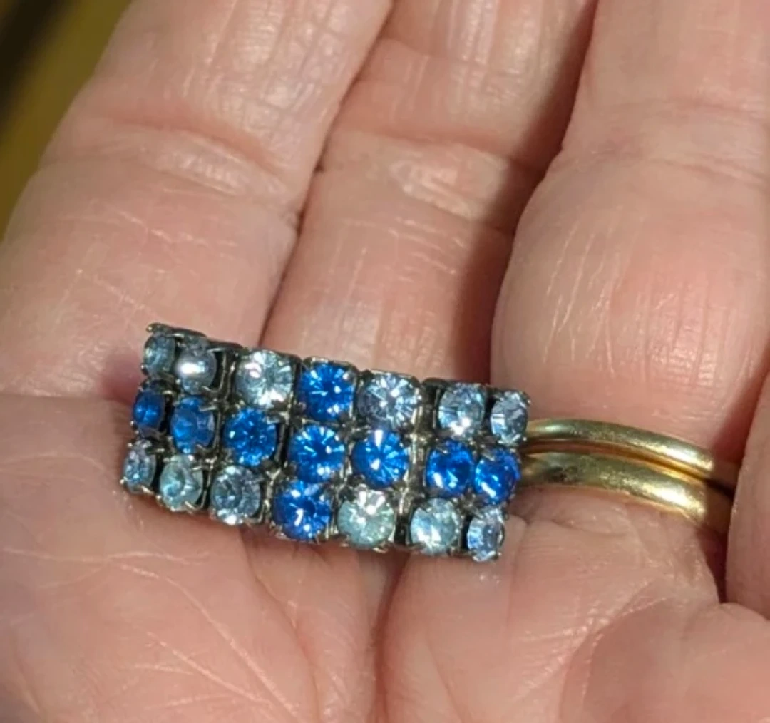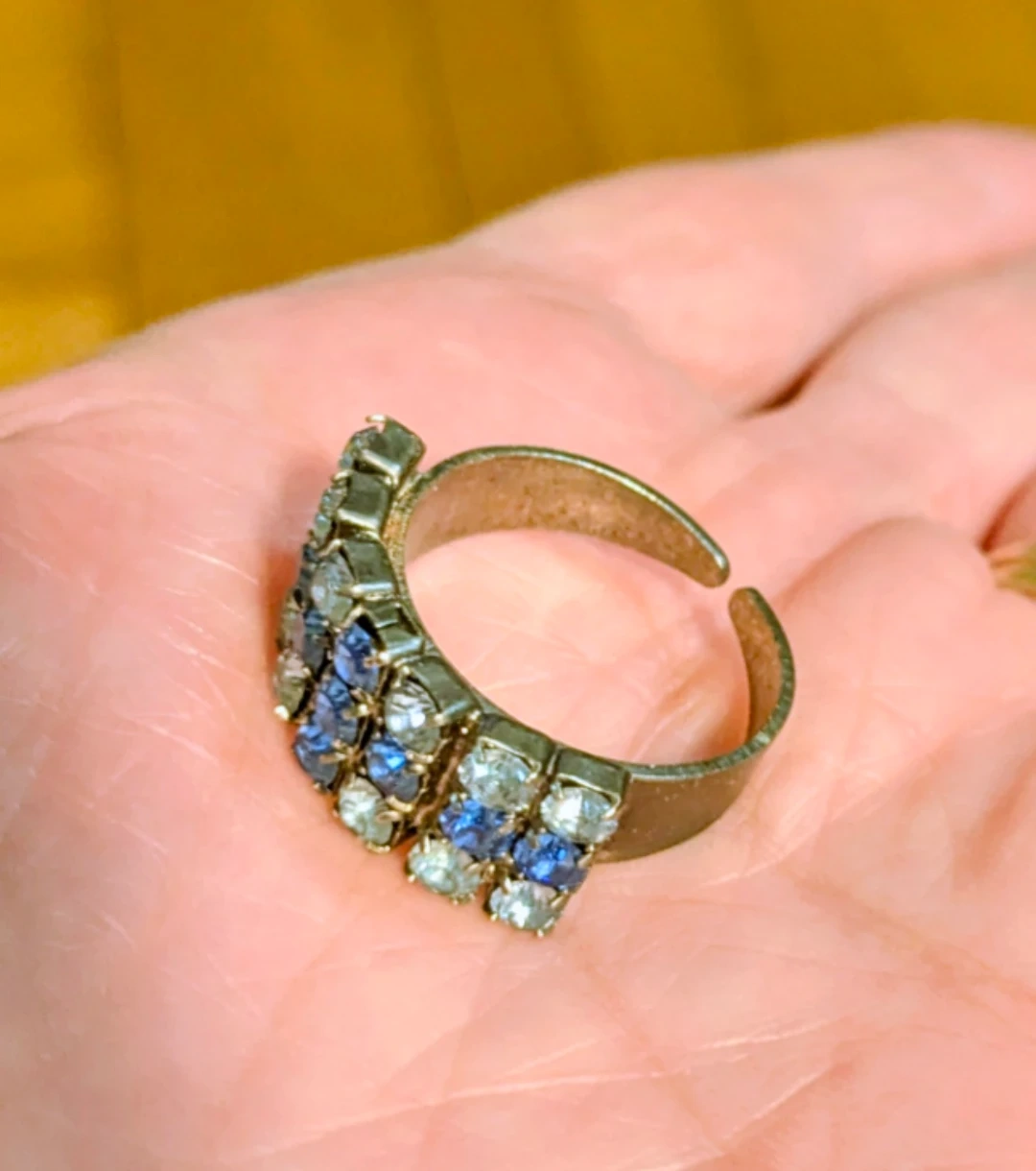 Vintage 1950s Rhinestone Sapphire Stones Ring Stunning!