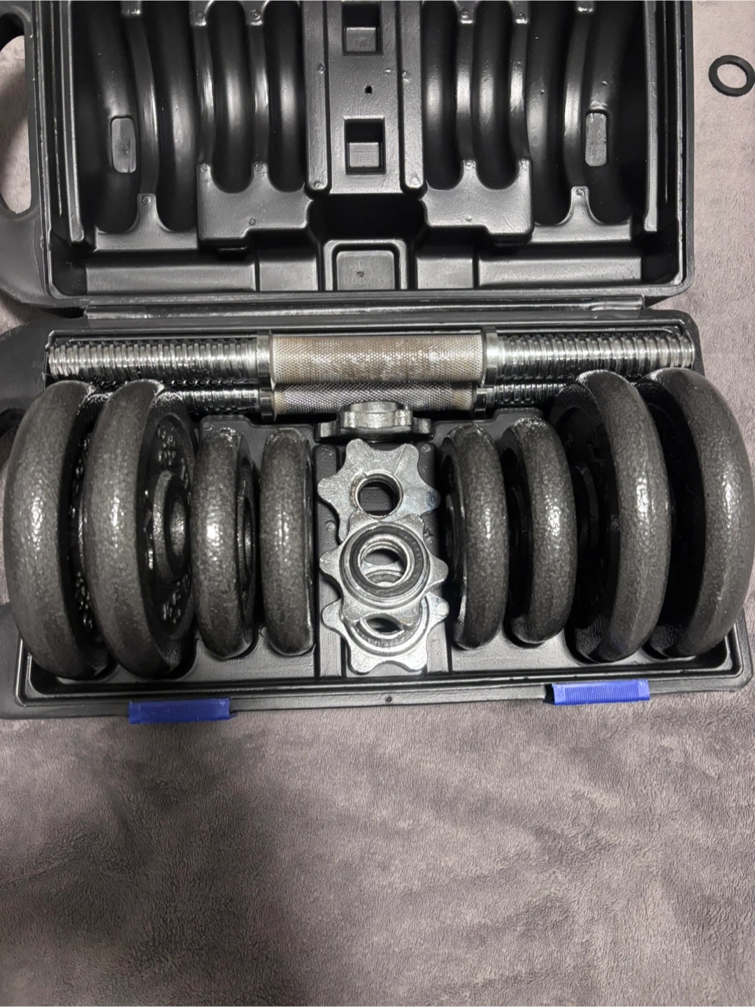 This CAP Barbell set includes one 20-inch bar, two 16-inch bars, four 5lb plates, four 2.5lb plates, and two collars. The total weight is 40lbs. It's great for strength training at home! Moving houses hence why I’m selling