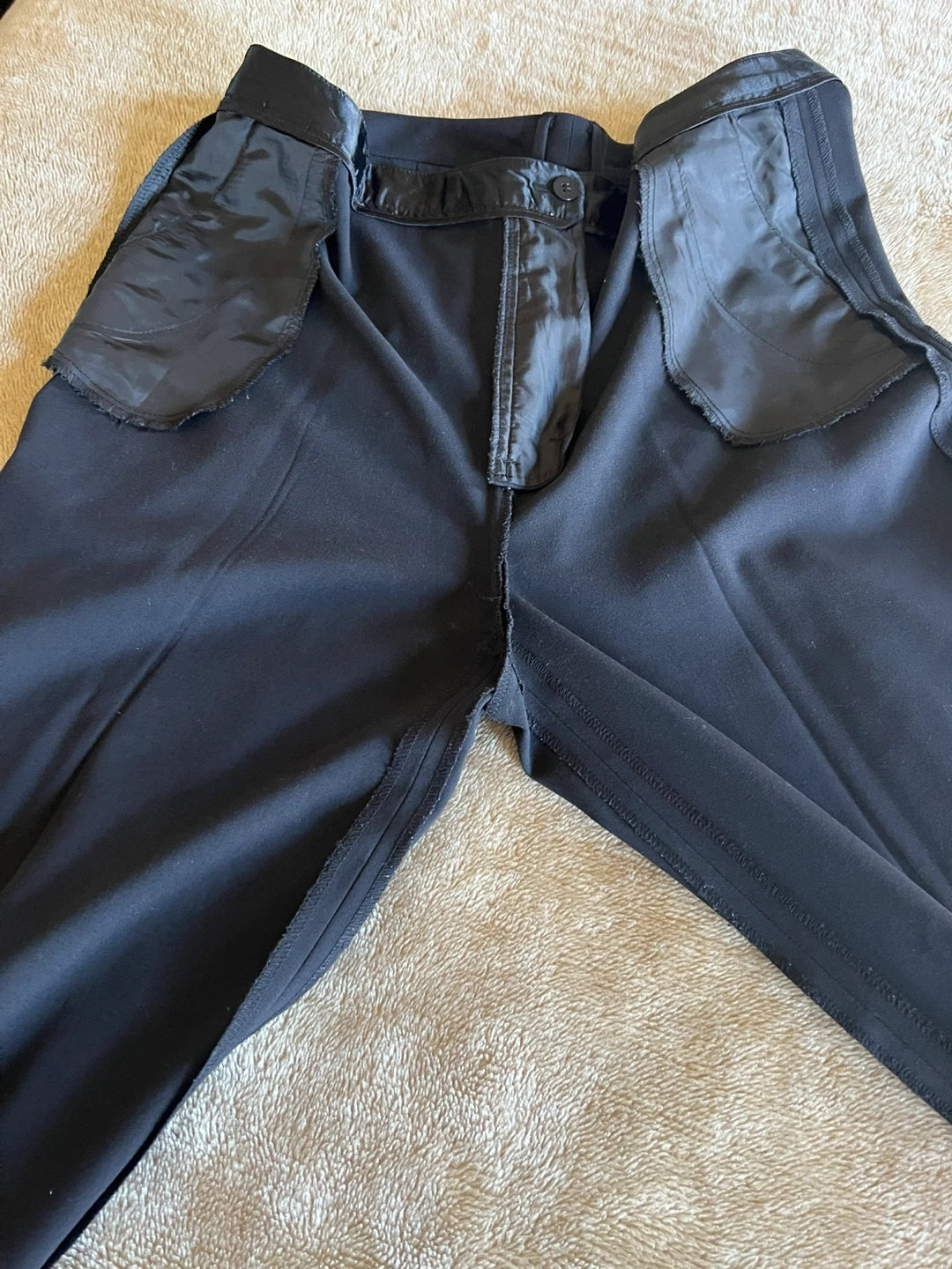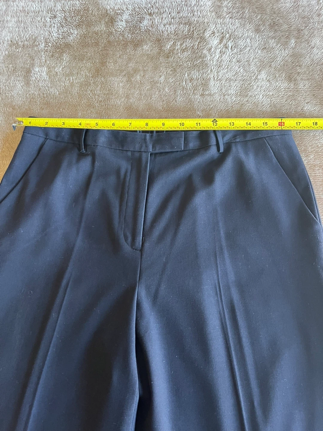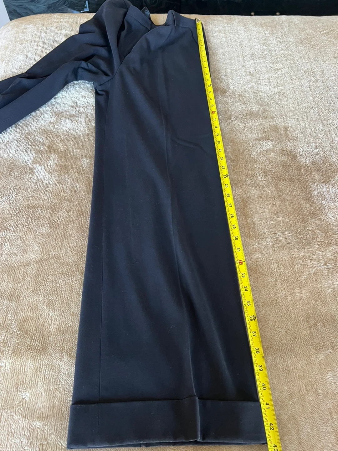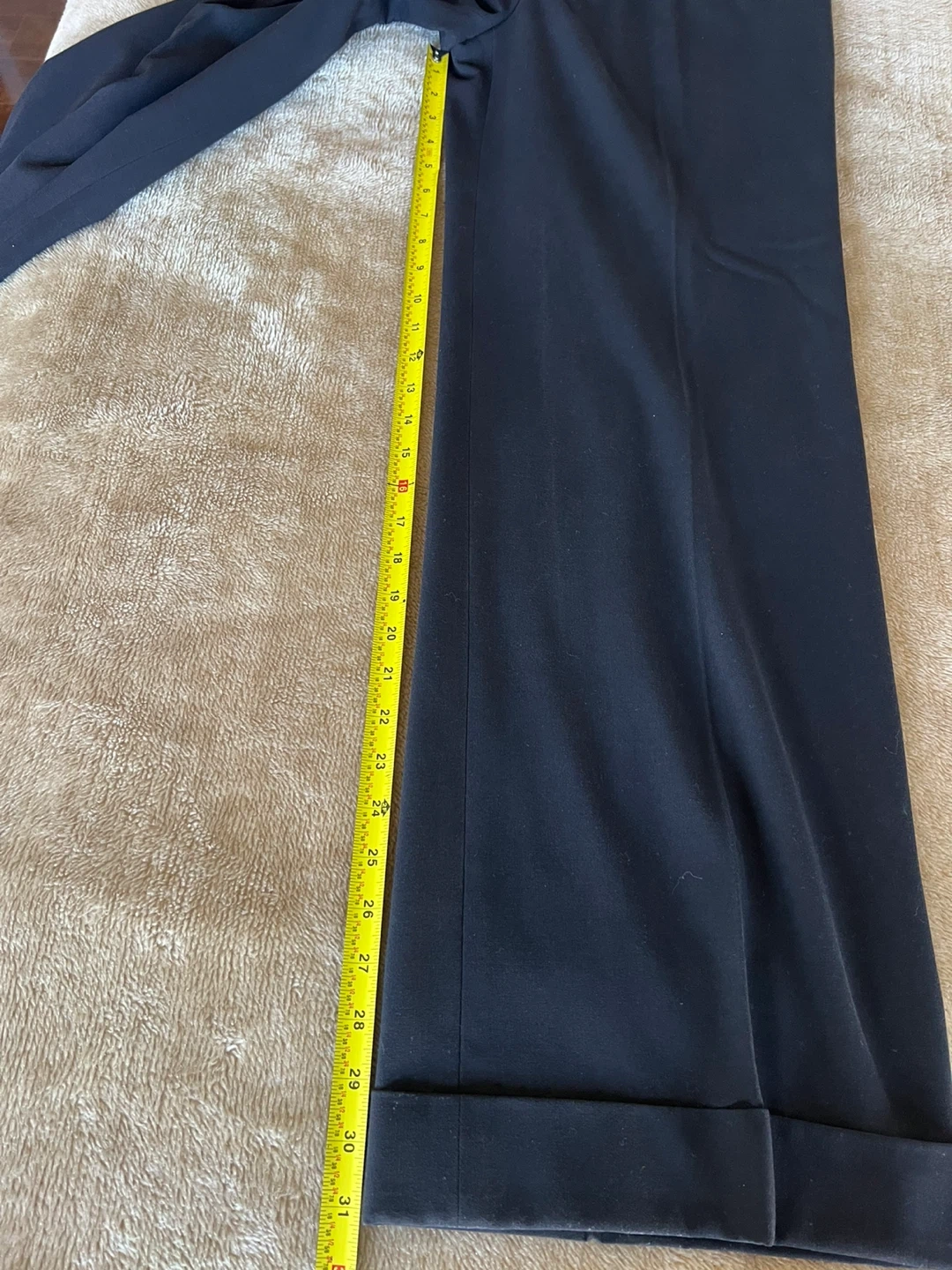 Classic black dress pants in a straight-leg cut. Made for everyday professional wear with a clean front and tailored finish. Comfortable waistband and neat hem create a polished look. Easy to pair with shirts and blazers for office or formal occasions. Can’t recall why there are no tags and no spot where they was initially attached. The slacks made from silk like fabric ( almost 100% sure it’s silk, mulberry 30mm). The look of the slacks is elegant. Don’t wrinkle with wear. Purchased from Sacks Fifth Avenue. Please pay attention to measurements, the fabric is not stretchy. I believe it will feet size 14/16. The side packets are still basted shut. Message me with any questions.