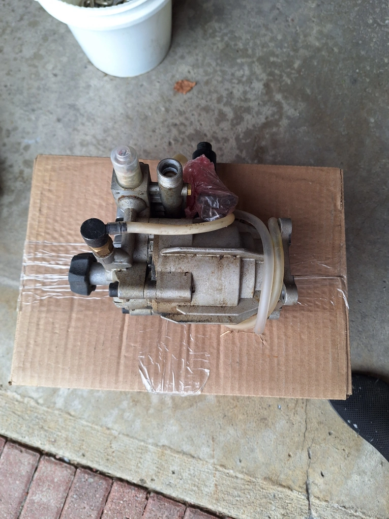 This is a pressure washer pump that was taken off a working pressure washer. It is in good used condition. There is no damage to the housing. The pump is ready to be installed.