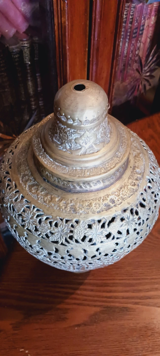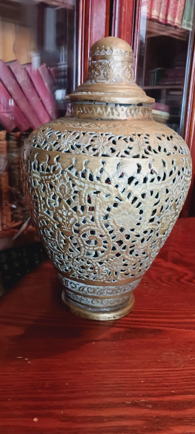 Antique Hindu/Persian Pierced Brass Lided Vase