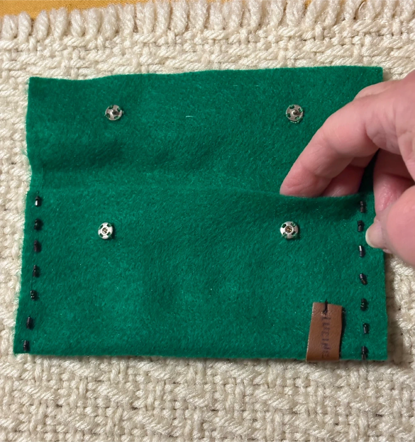 Green Felt Pouch with Bird Ribbon, handmade, new