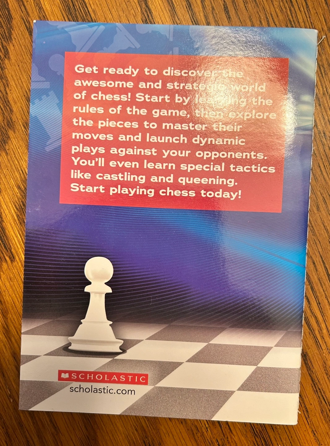 Scholastic book. Learn chess rules, piece moves, and game strategies. Master dynamic plays against opponents. Learn special tactics like castling and queening. Start playing chess today! 😊