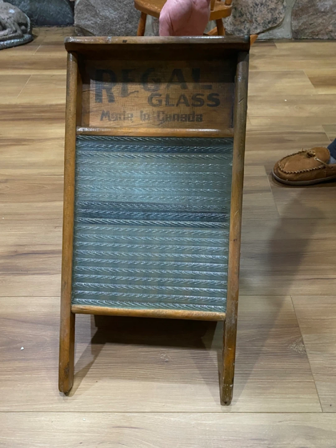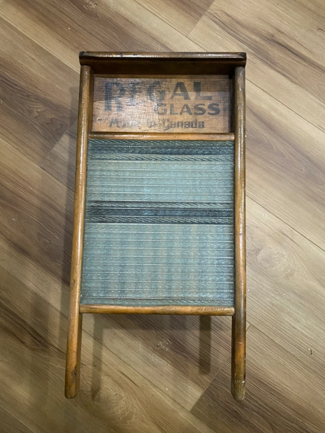 Selling a vintage Regal Glass washboard, marked "Made in Canada"! This unique piece would be a great addition to any collection or as a decorative item. It shows some wear consistent with its age, but is still in good condition. A piece of Canadian history!