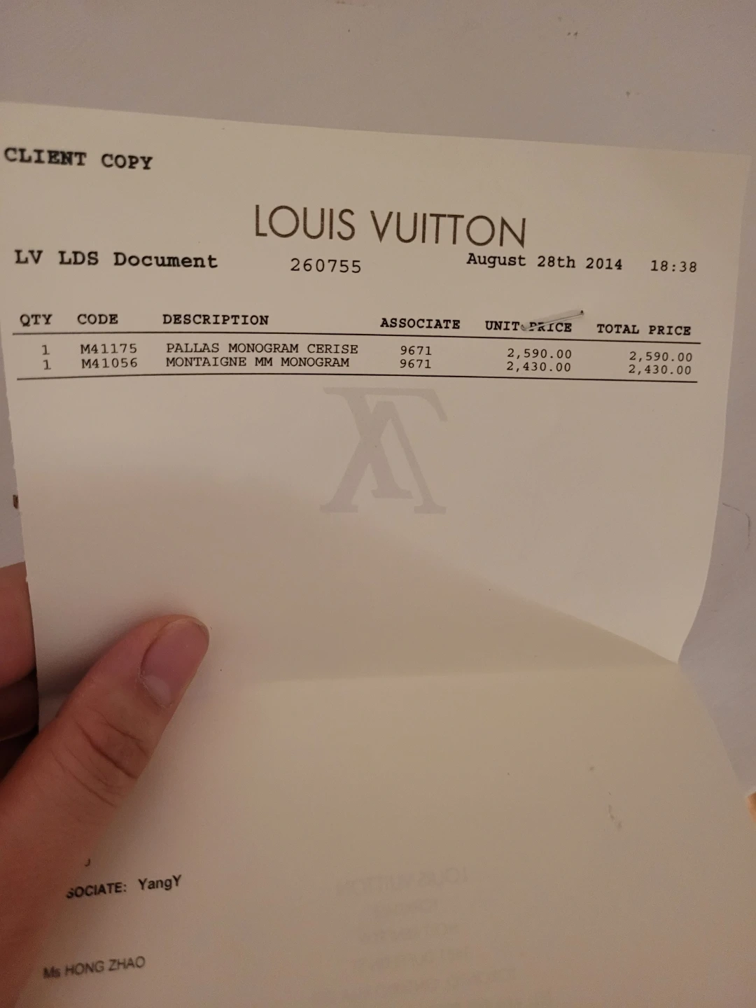 Original price at purchase $2590. Good condition, minor wear and tear due to weather on the sides of the straps (barely visible but can be felt). No other damages. Original receipts and bags included