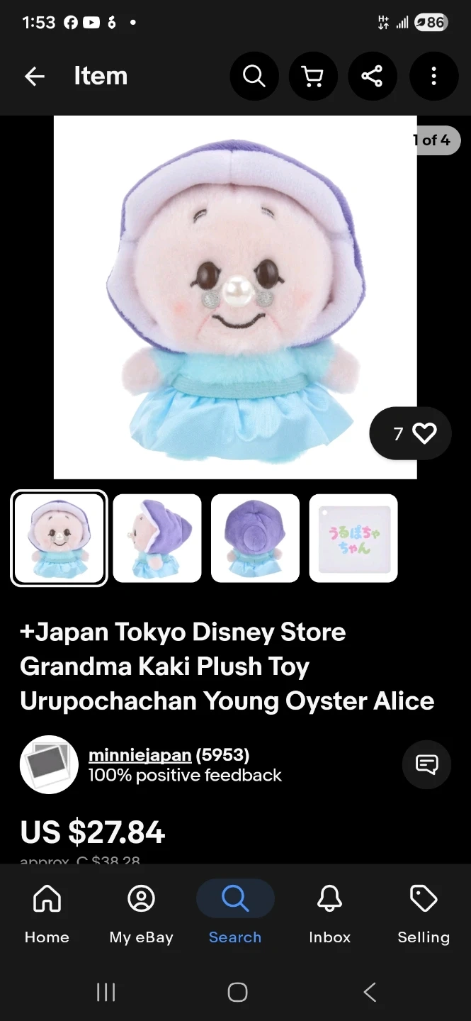 This is a Disney Store Japan Grandma Kaki plush toy featuring Urupochanchan, the Young Oyster Alice. It's a soft, plush collectible. It comes in its original packaging.