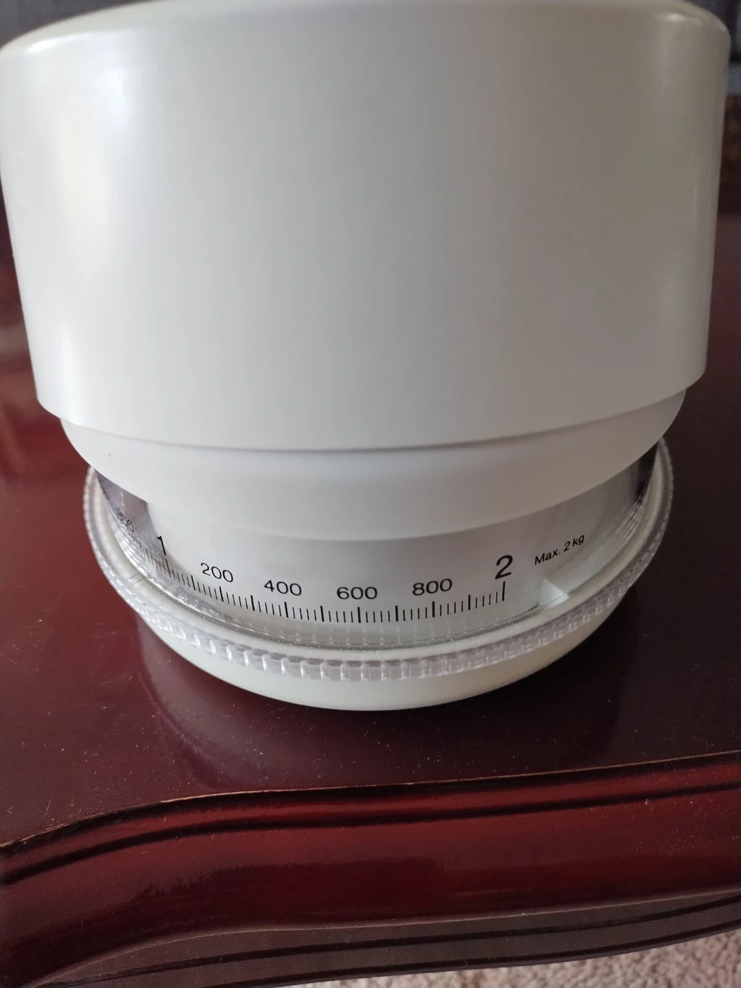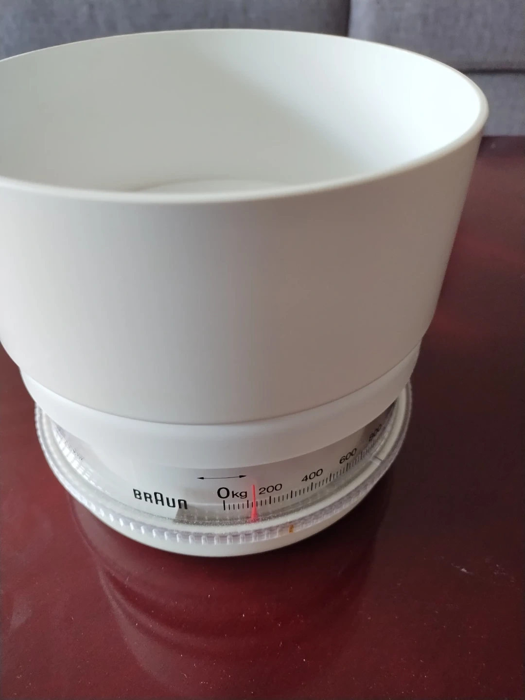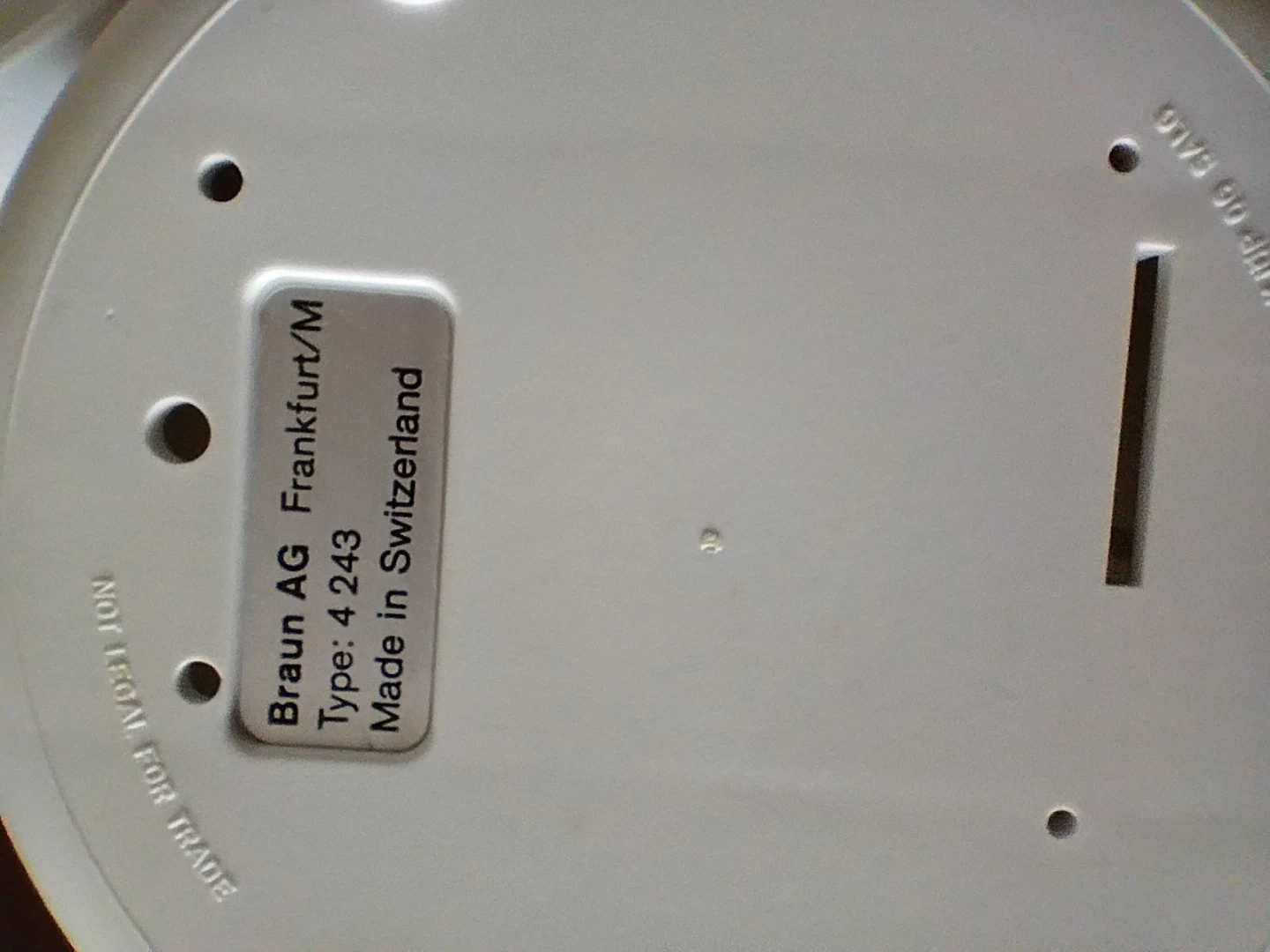 This is a Braun kitchen scale, model Type 4243. It has a maximum capacity of 2 kg. Made in Switzerland, Practical and Useful in the kitchen.