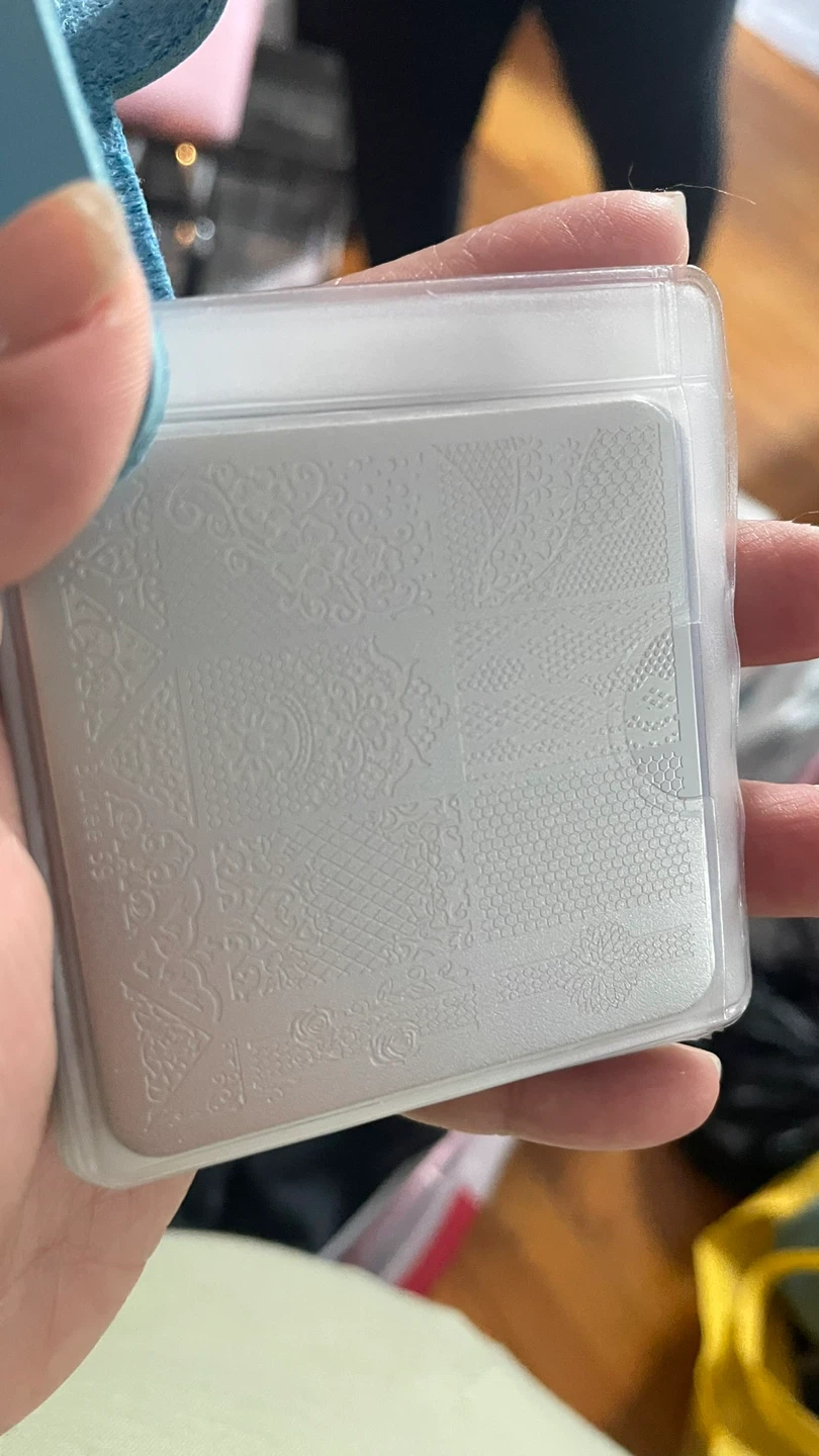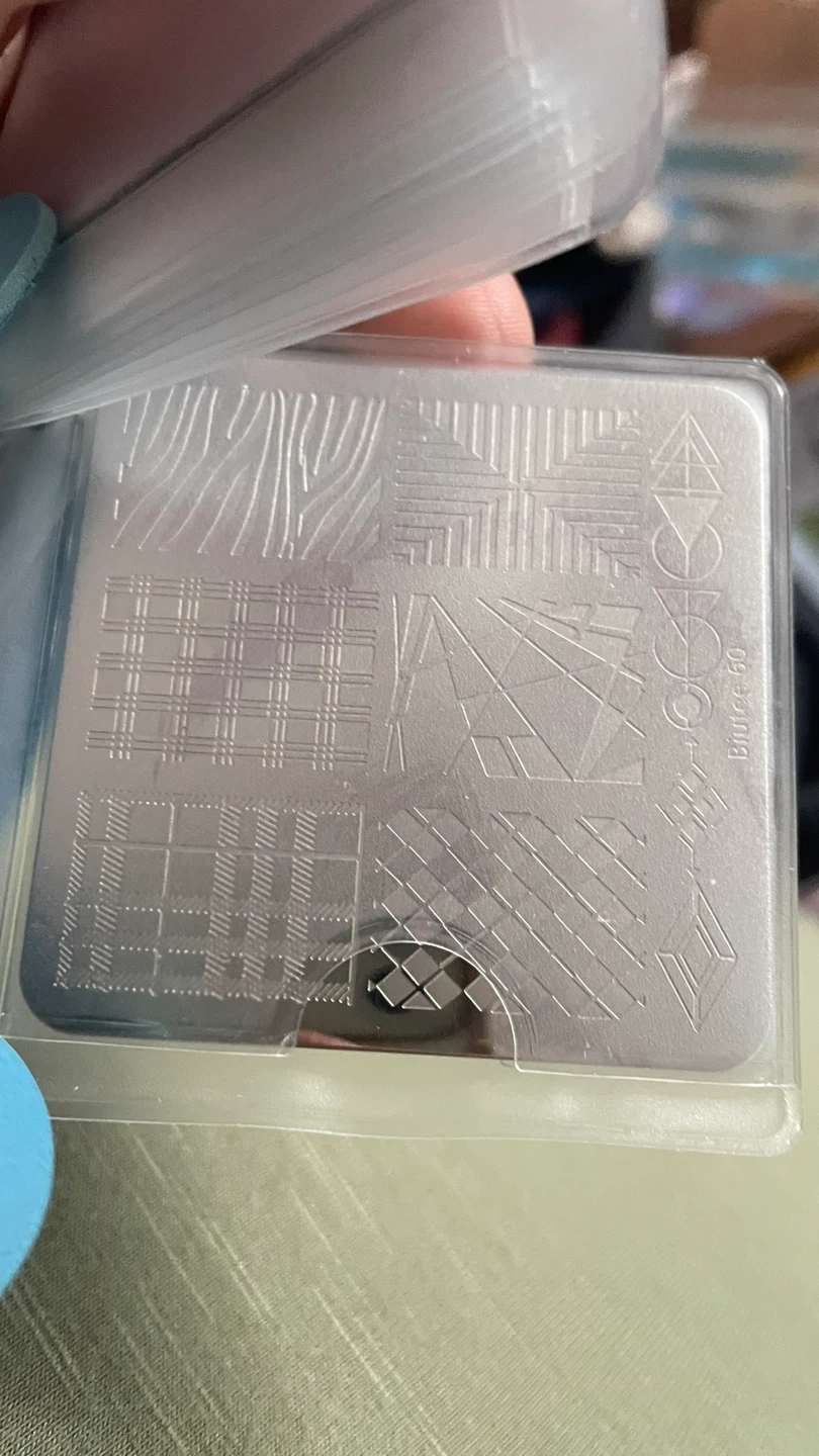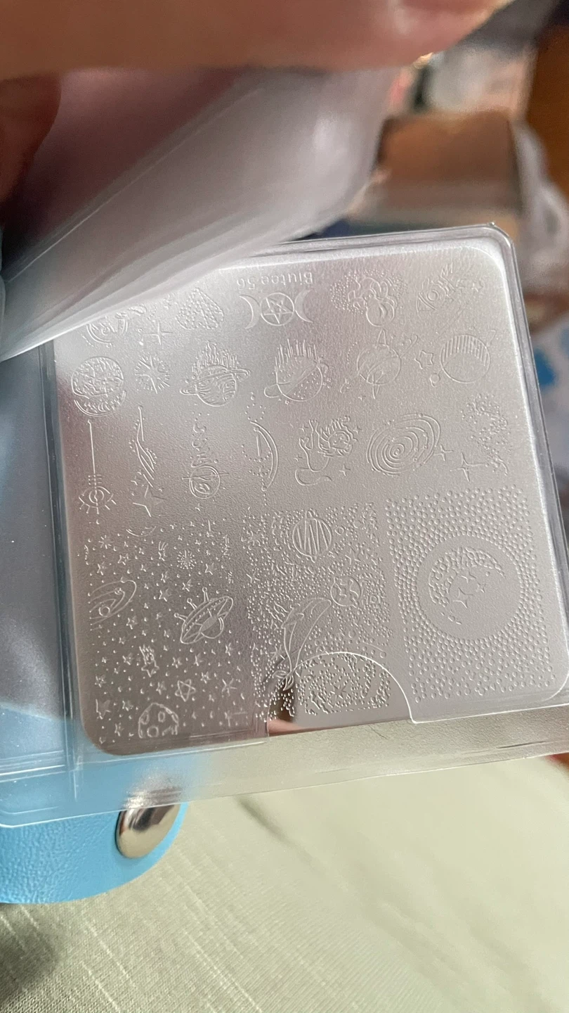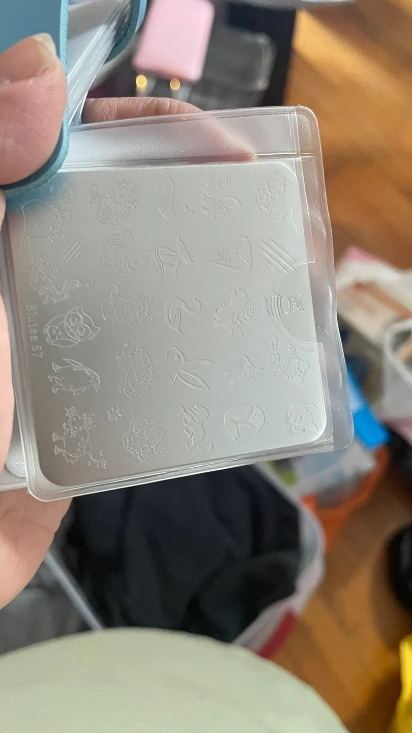 Here's a set of Born Pretty nail art stamping plates! There are several different designs, including feathers, leaves, butterflies, and geometric patterns