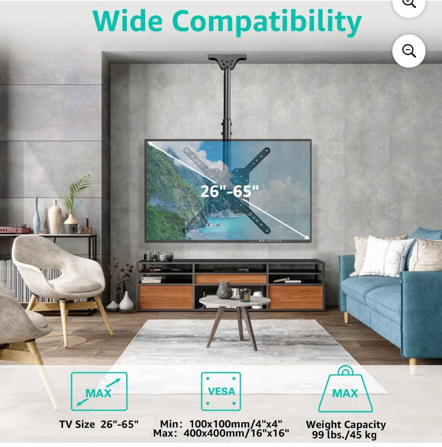 MOUNT PRO Ceiling TV Mount for Most 26-65 inch TVs, 8 Height Adjustable Settings Full Motion Swivel and Tilt Hanging TV Wall Mount Bracket, Max VESA 400x400mm, Holds up to 99 lbs