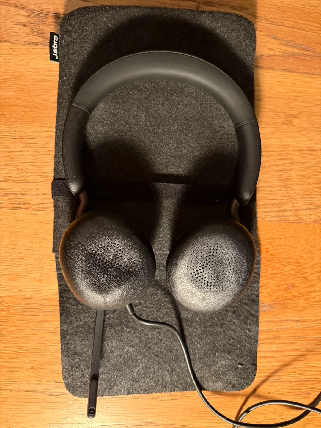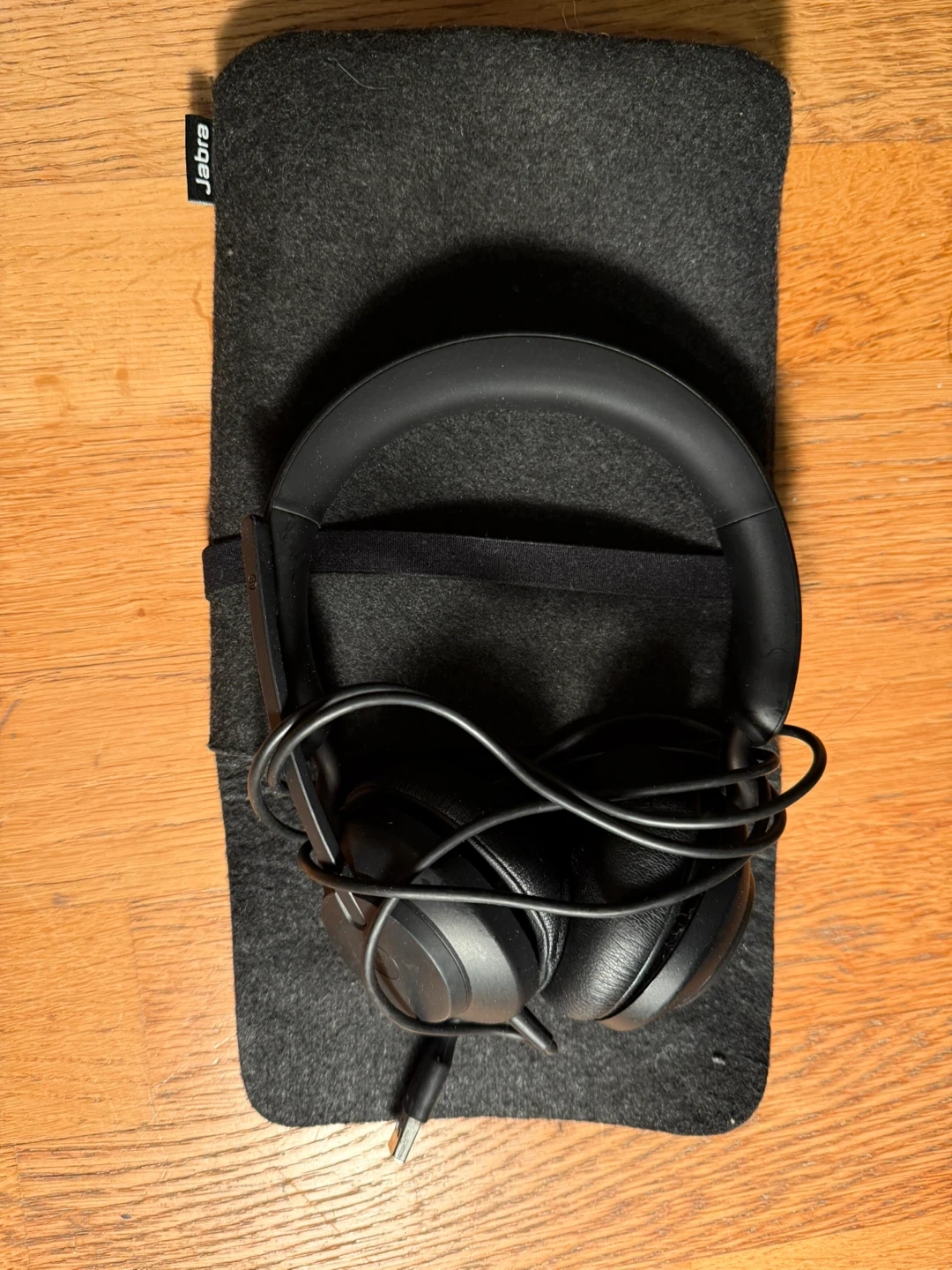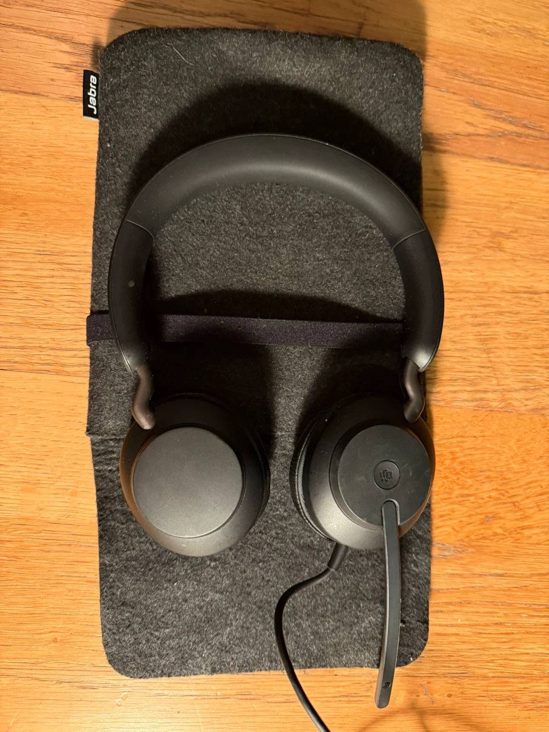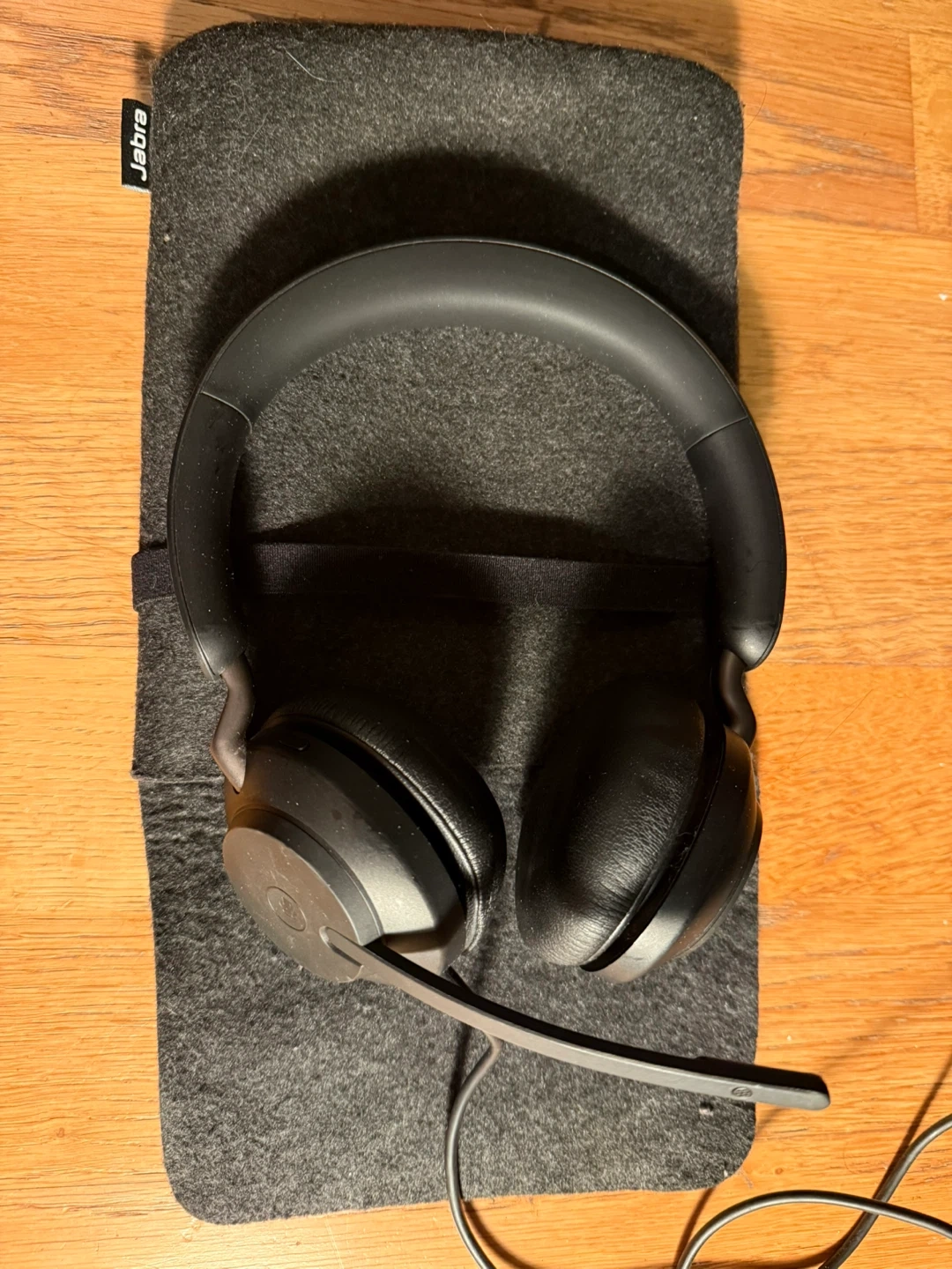 65Selling a Jabra Evolve2 40 MS Stereo headset in black. It's in great condition and comes with its carrying case. Perfect for work or study!