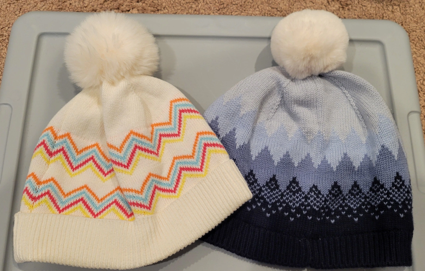 78size 12-24m. Janie & Jack Winter hats with pom poms. VGUC worn once or twice. sfpfxp