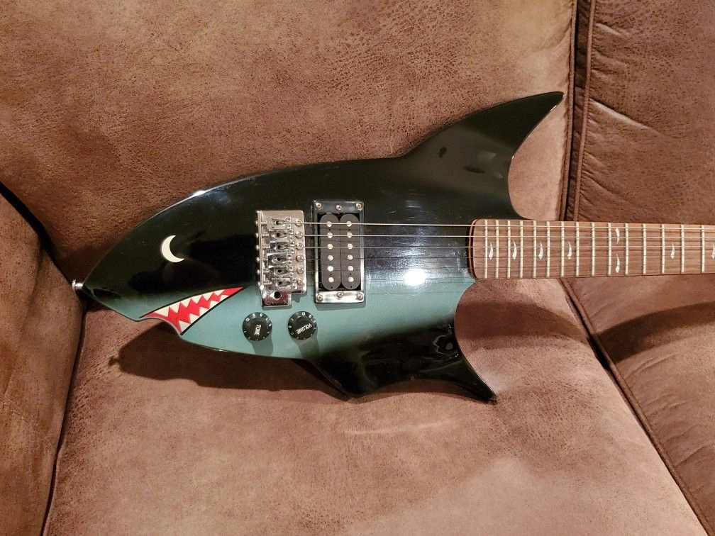 Very Rare & Collectible Shark guitar. Displayed in a case on the wall of a Man Cave for most of its life. Rare 1998 single pickup model Body Color: Multicolor Right Or Left Handed: Right-handed Type: Electric Brand: Jay Turser