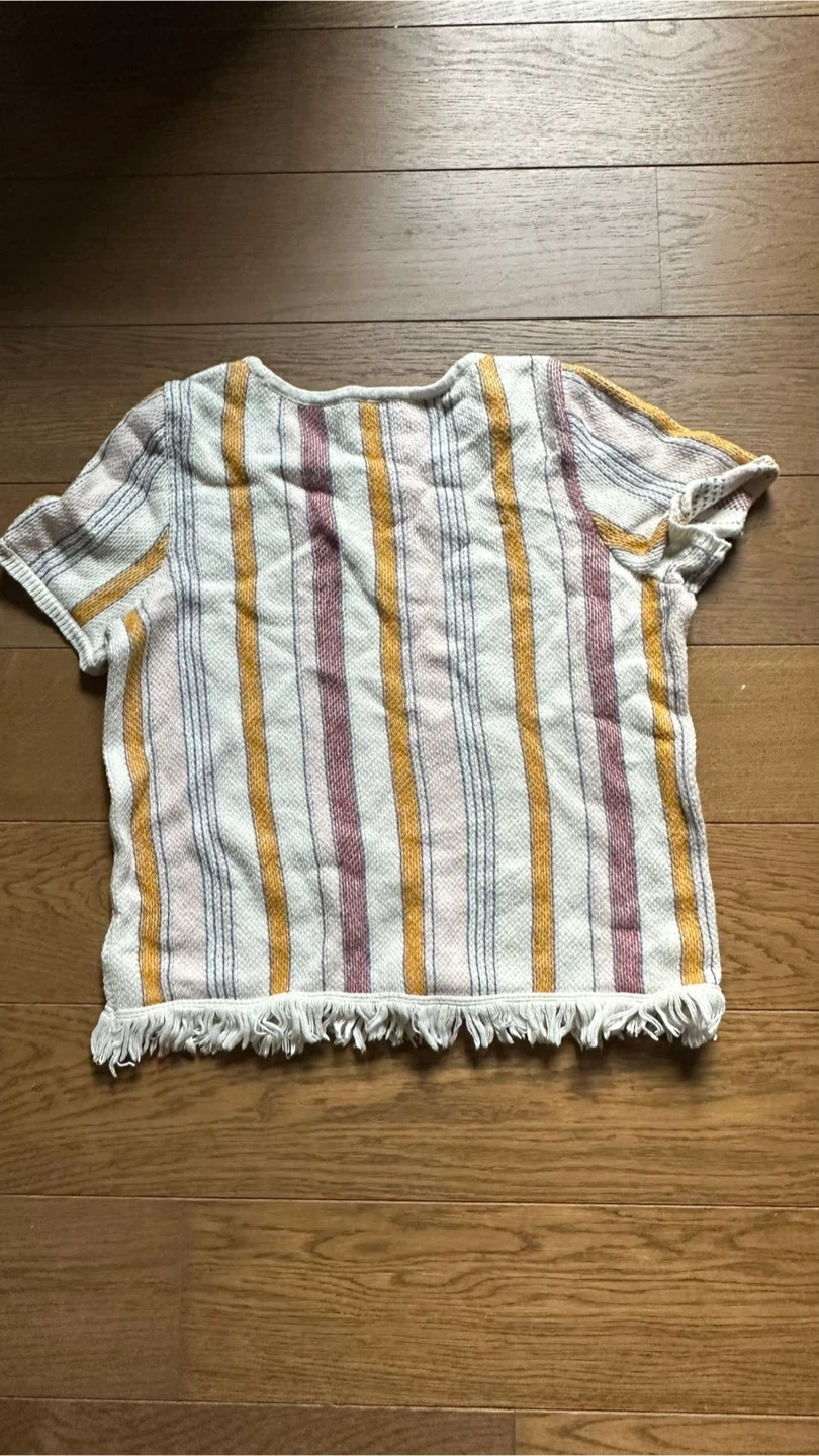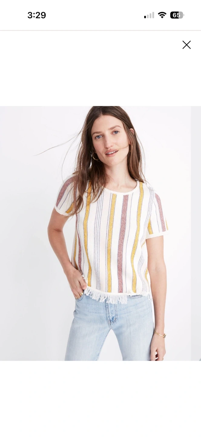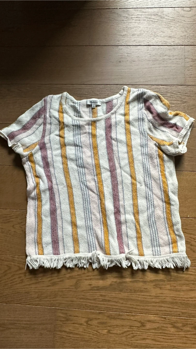 Madewell tee-style fringed sweater in colorful stripes inspired by a vintage beach blanket. Wear it on every warm day with jeans, cutoffs, whatever.