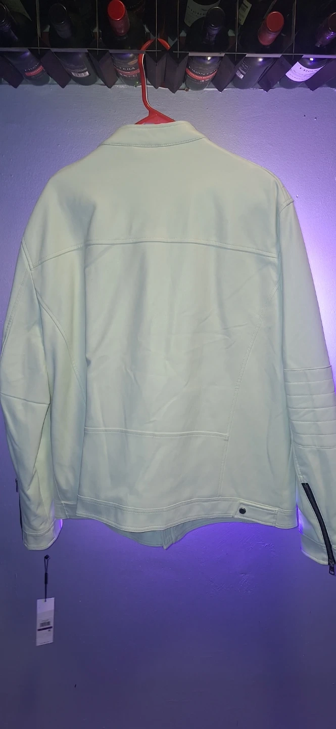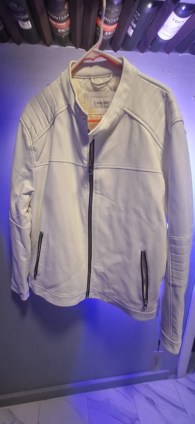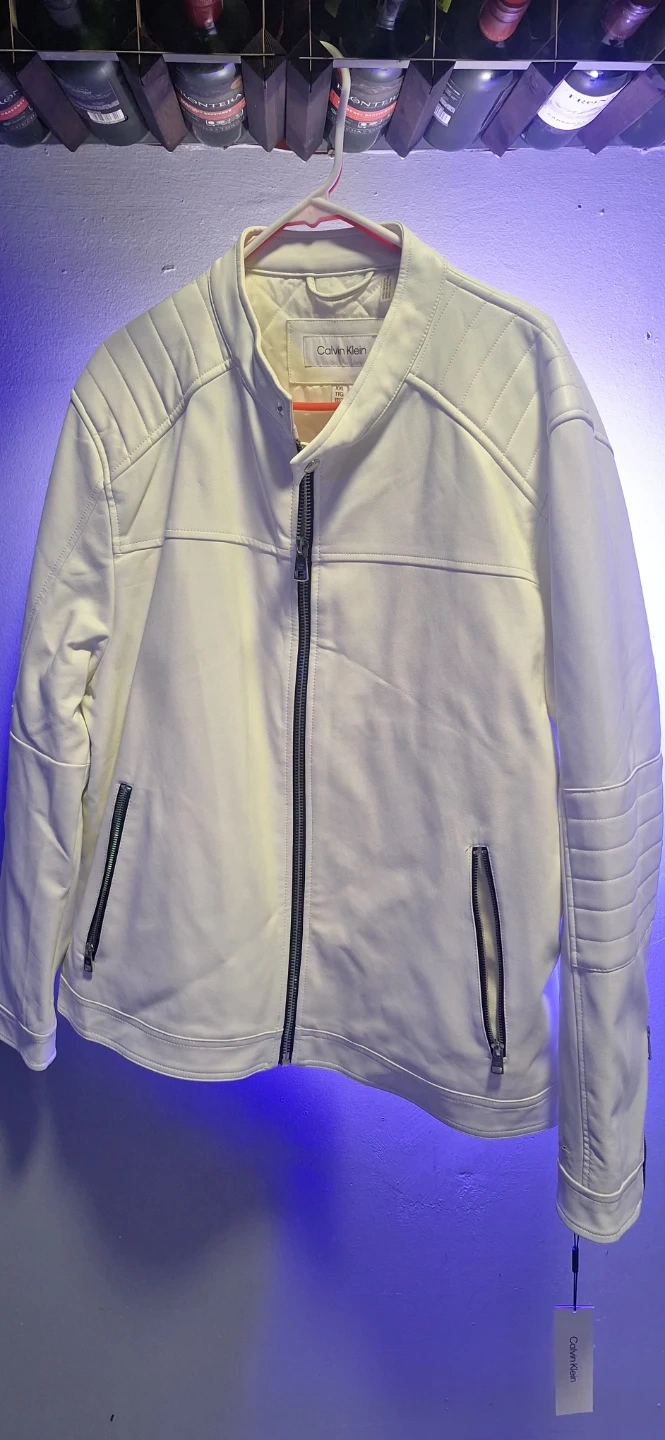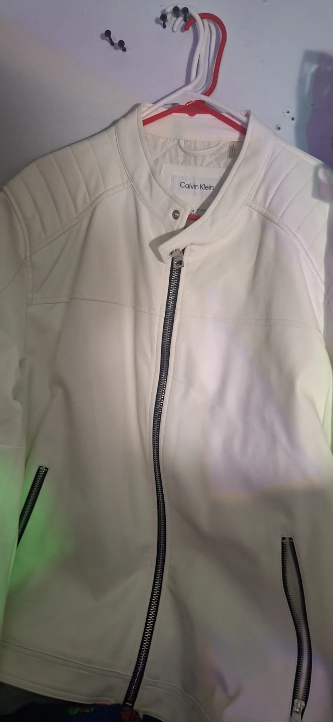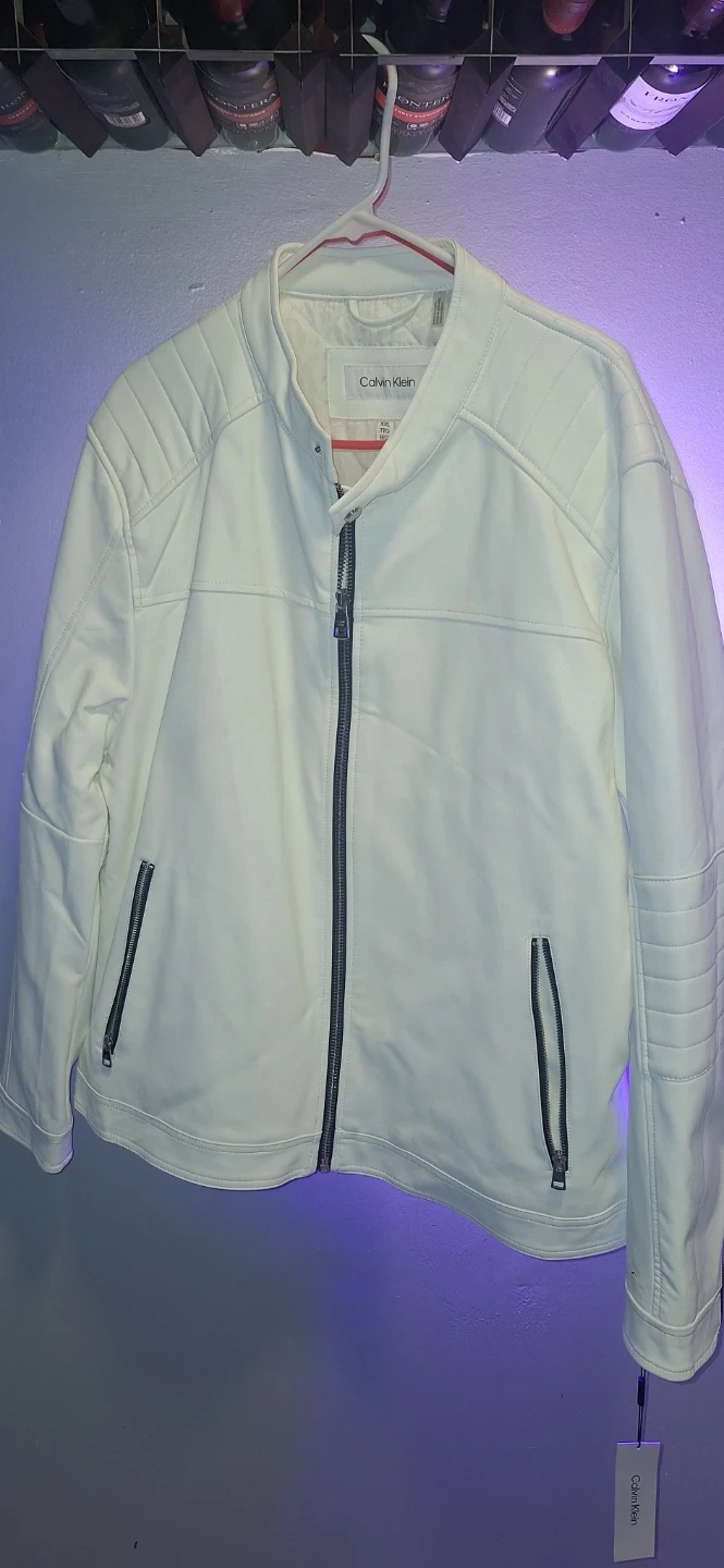 Selling a brand new with tags Calvin Klein faux leather jacket in white. It's a stylish and modern piece that would look great in any wardrobe. Feel free to ask if you have any questions!