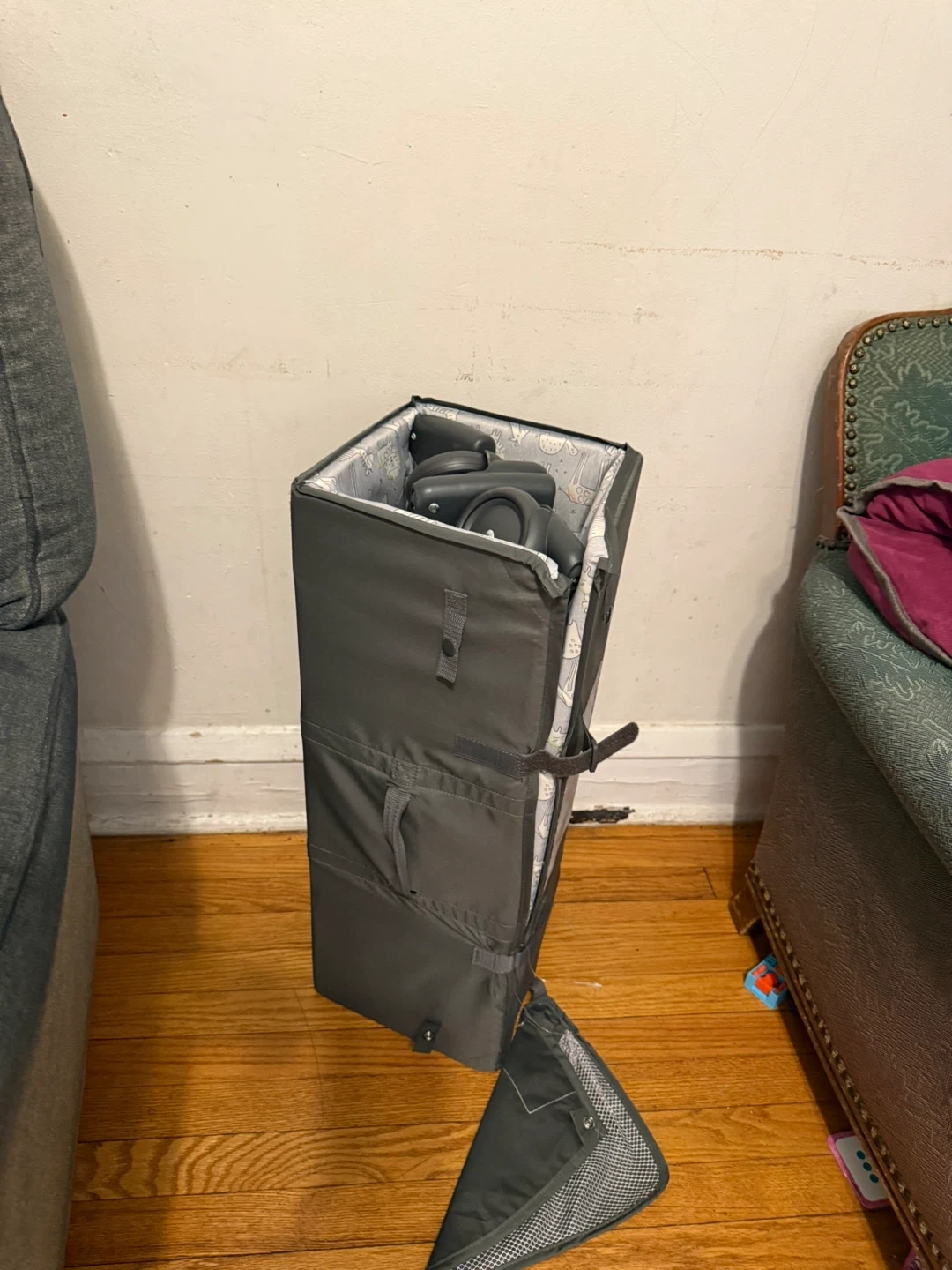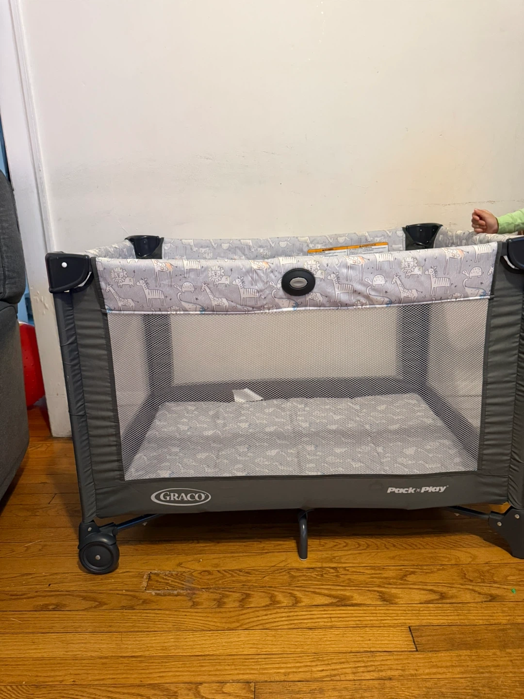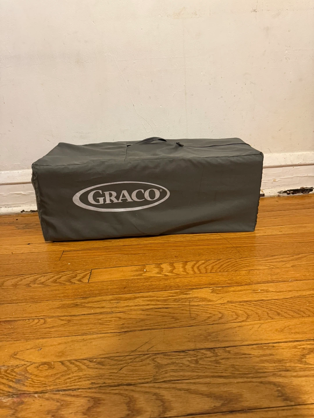 This Graco Pack 'n Play playard is great for travel or home use. It features mesh sides for ventilation and a comfortable sleeping surface. It comes with a carrying bag for easy transport!