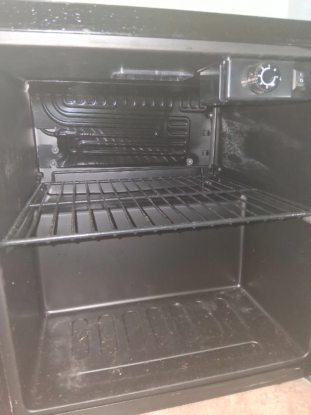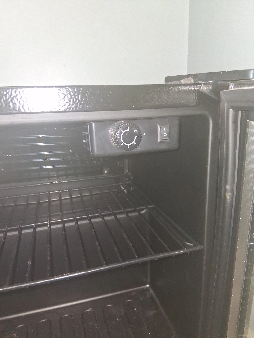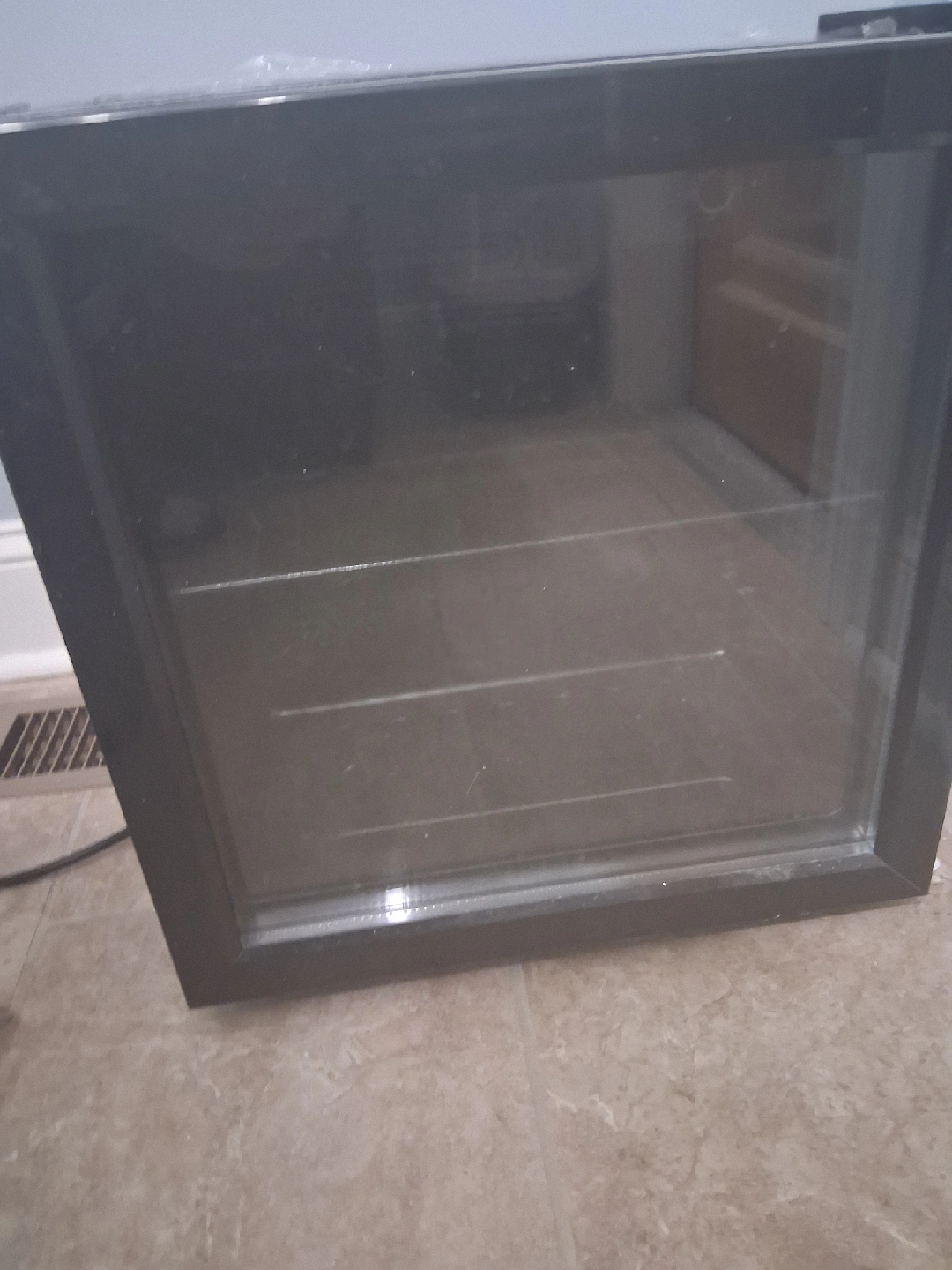 65Mini fridge, hardly used. Still has Factory plastic on the sides. No scratches, like new. I would say it can hold at least 30 12 oz cans. Selling a JC-36 Wine Cooler & Refrigerator. It is black and measures approximately 16 1/8"(W) x 16 1/2"(D) x 18 1/8"(H).